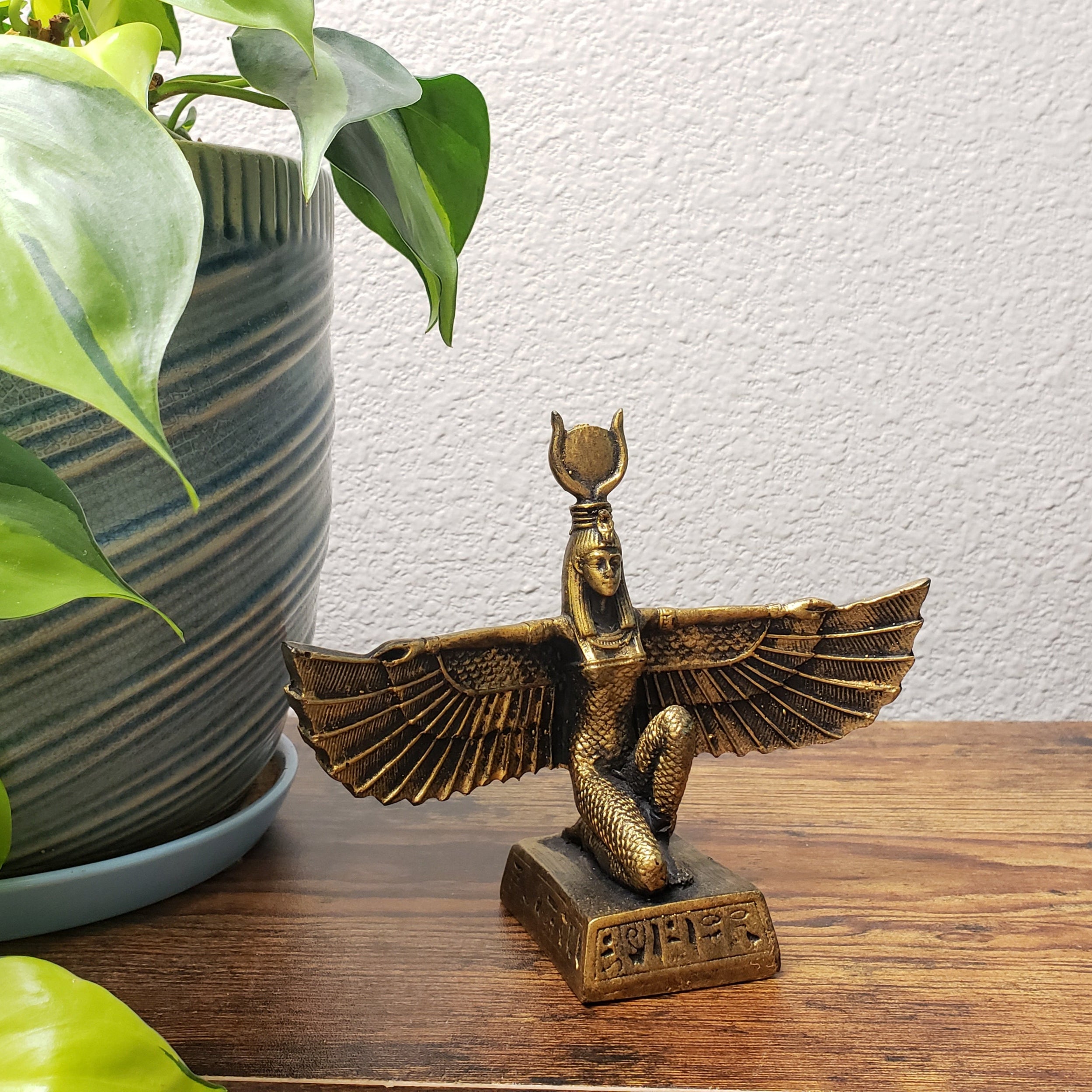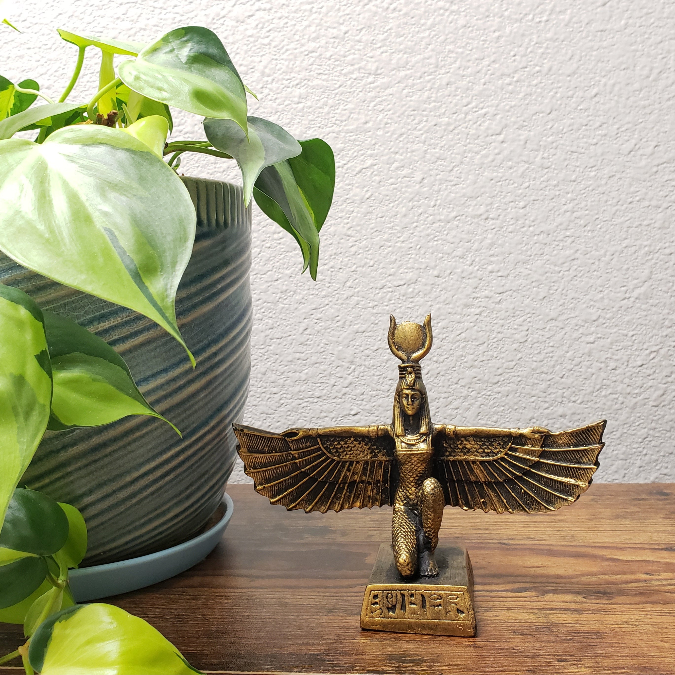 Diese wunderschöne Statue stellt die ägyptische Göttin Isis dar. Die große Muttergöttin Isis war für ihre unglaublichen Heil- und Regenerationskräfte bekannt. Als ägyptische Göttin des Lebens und der Magie beschützte Isis Frauen und Kinder und heilte sogar Kranke.