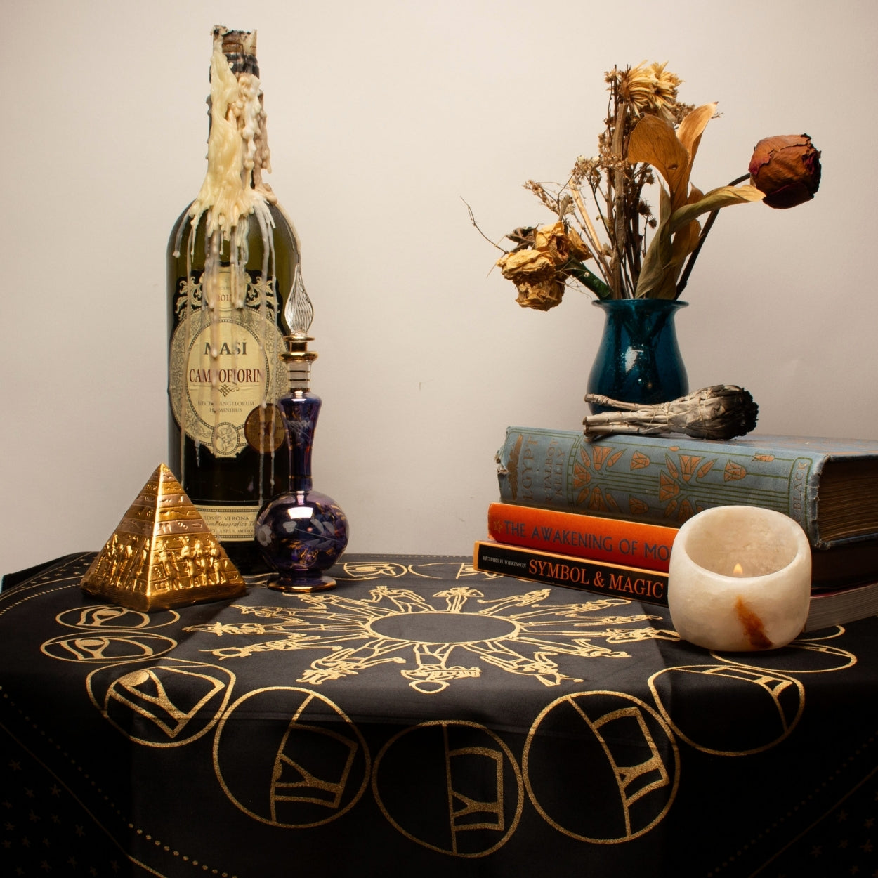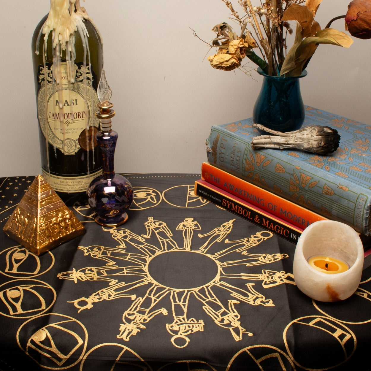 Dieses kunstvoll gestaltete Tuch bringt die Geheimnisse der Astrologie, Mythologie und göttlichen Symbolik in Ihre Rituale, Lesungen und Meditationen ein.