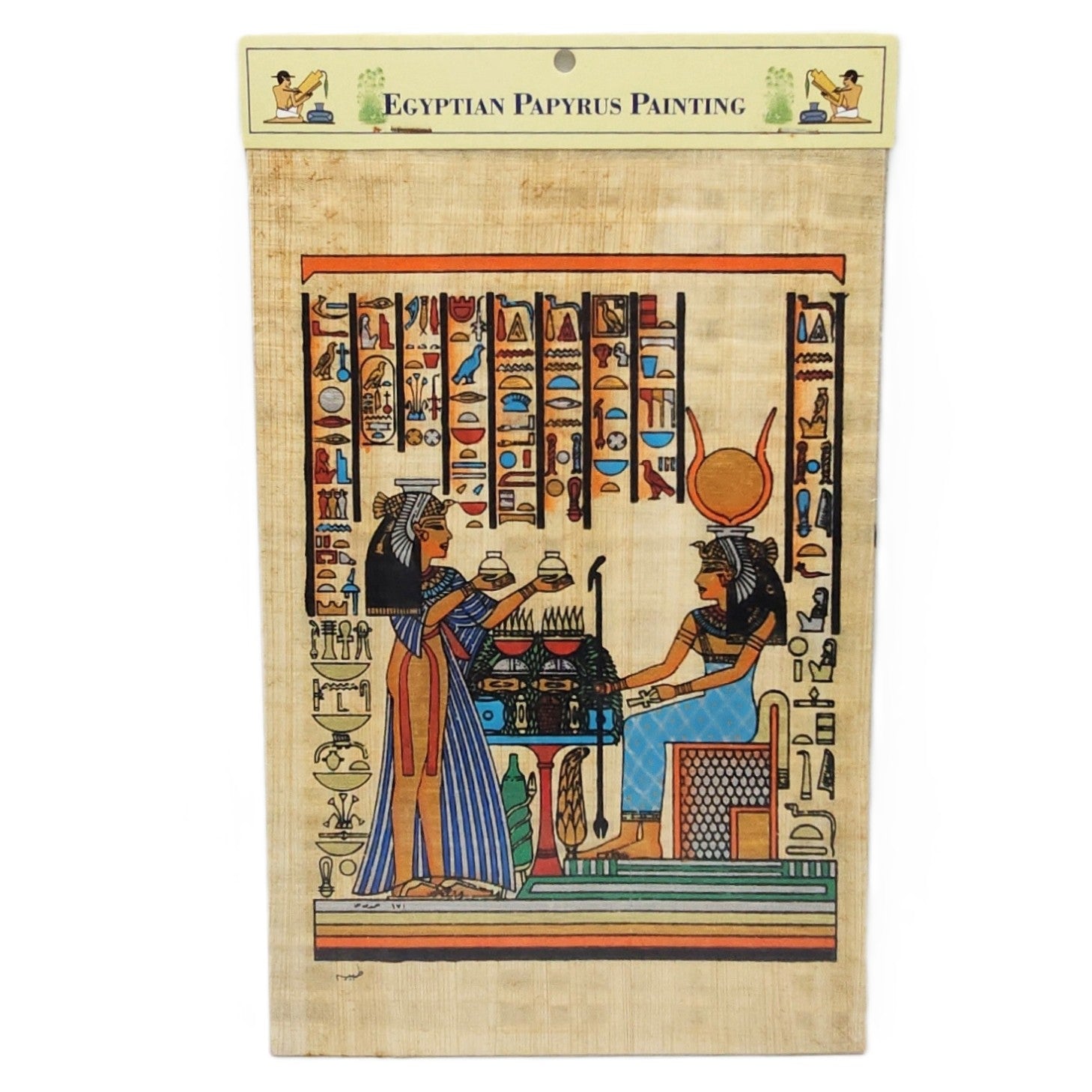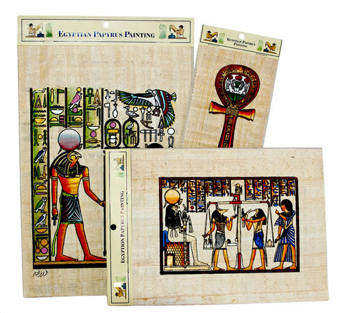 These original loose paper paintings are made from papyrus. Papyrus is a material similar to thick paper that was used in ancient times as a writing surface. It was made from the pith of the papyrus plant. The paper has raw edges and comes shipped in a cello bag.