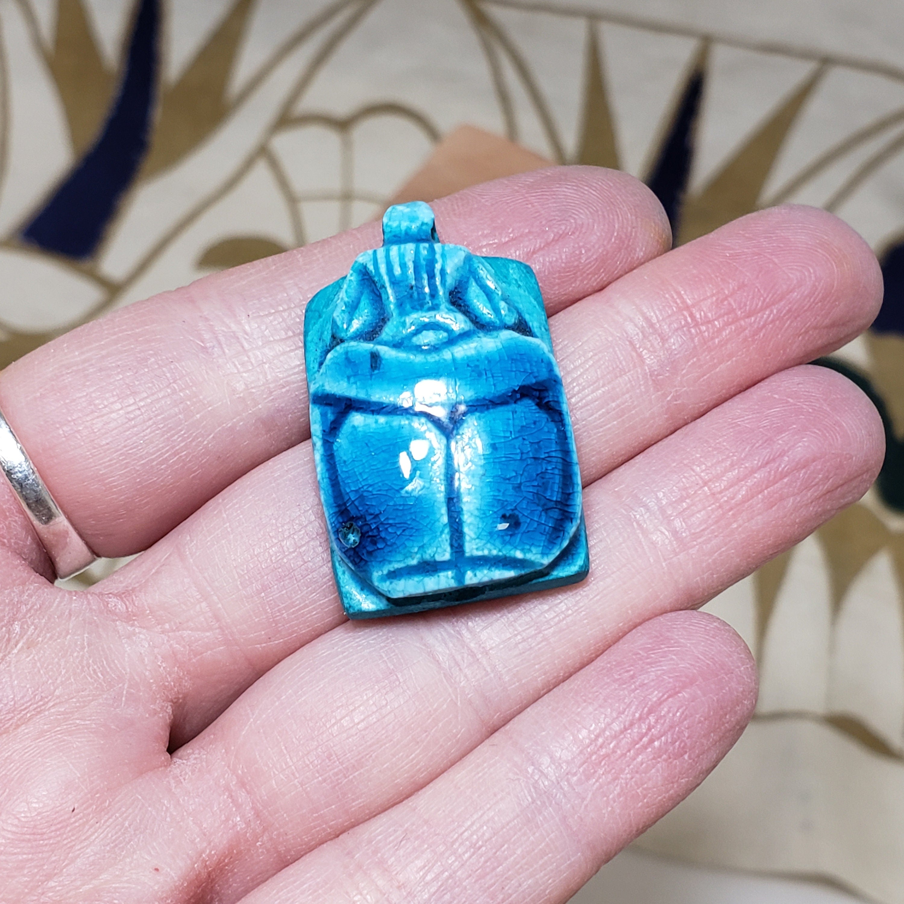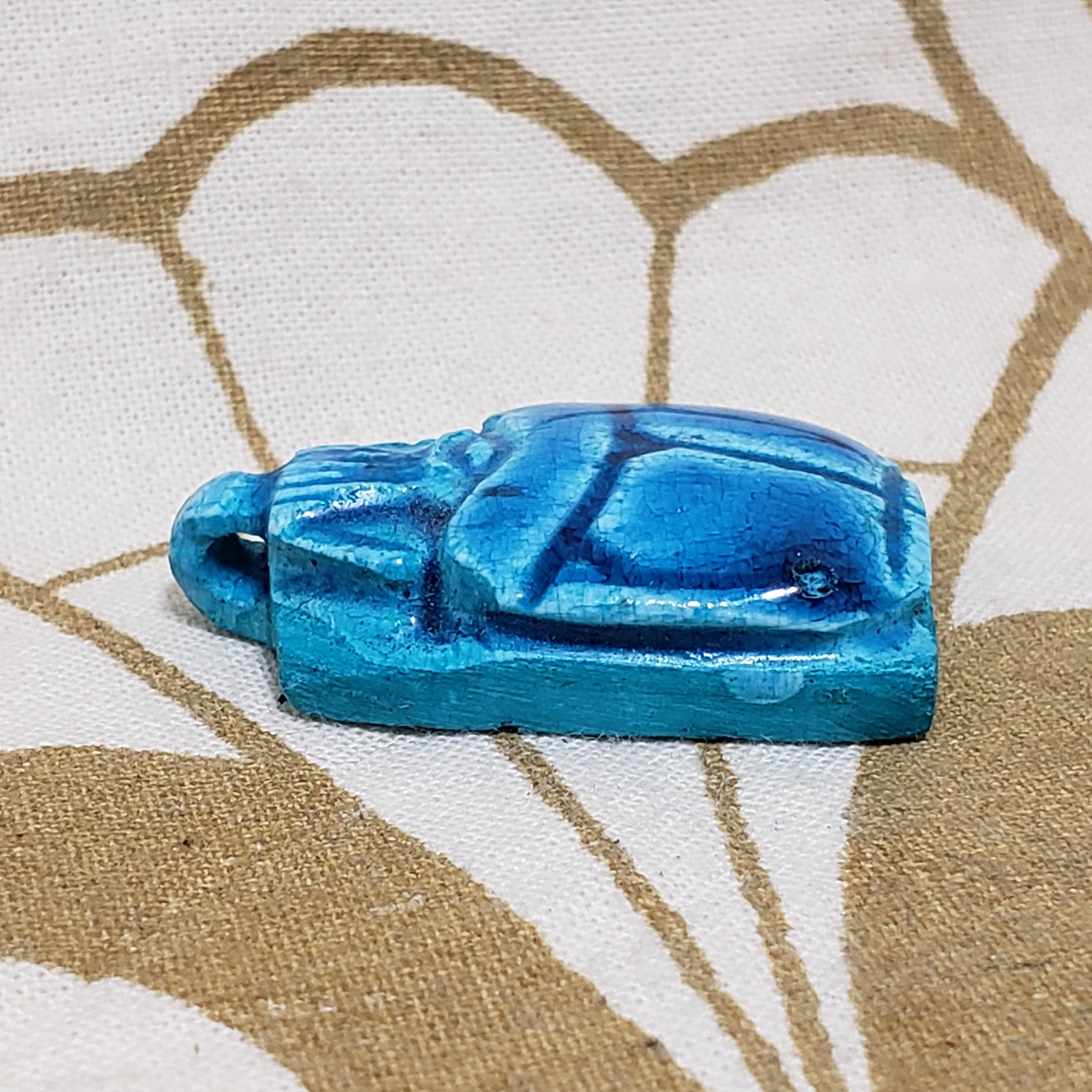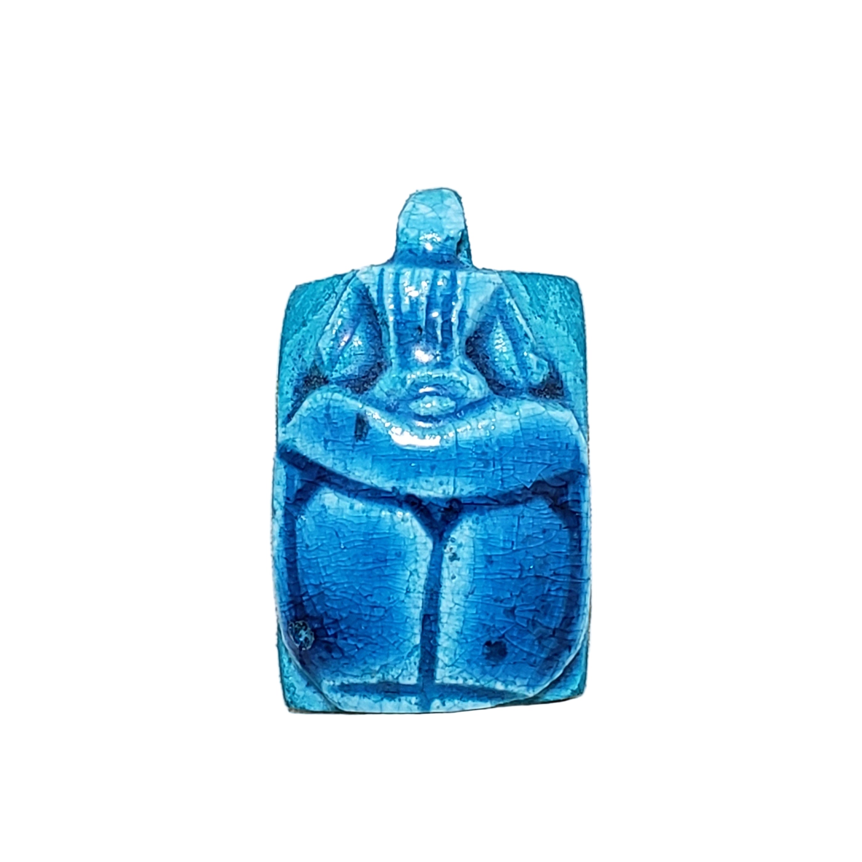 Die alten Ägypter glaubten, der Skarabäus sei die irdische Manifestation des Gottes Chepri, der täglich die Sonne über den Himmel schob, um dann zu verschwinden und am nächsten Morgen auf wundersame Weise wieder zu erscheinen. Daher gilt er als mächtiges Amulett für Selbsterschaffung, Transformation und Wiedergeburt. Lebende trugen oder bewahrten ihn auf und legten ihn den Toten ins Grab, um ihnen den Weg ins Jenseits zu ebnen. Die Unterseite war üblicherweise mit Mustern oder Hieroglyphen verziert, die als Abdrucksiegel dienten.