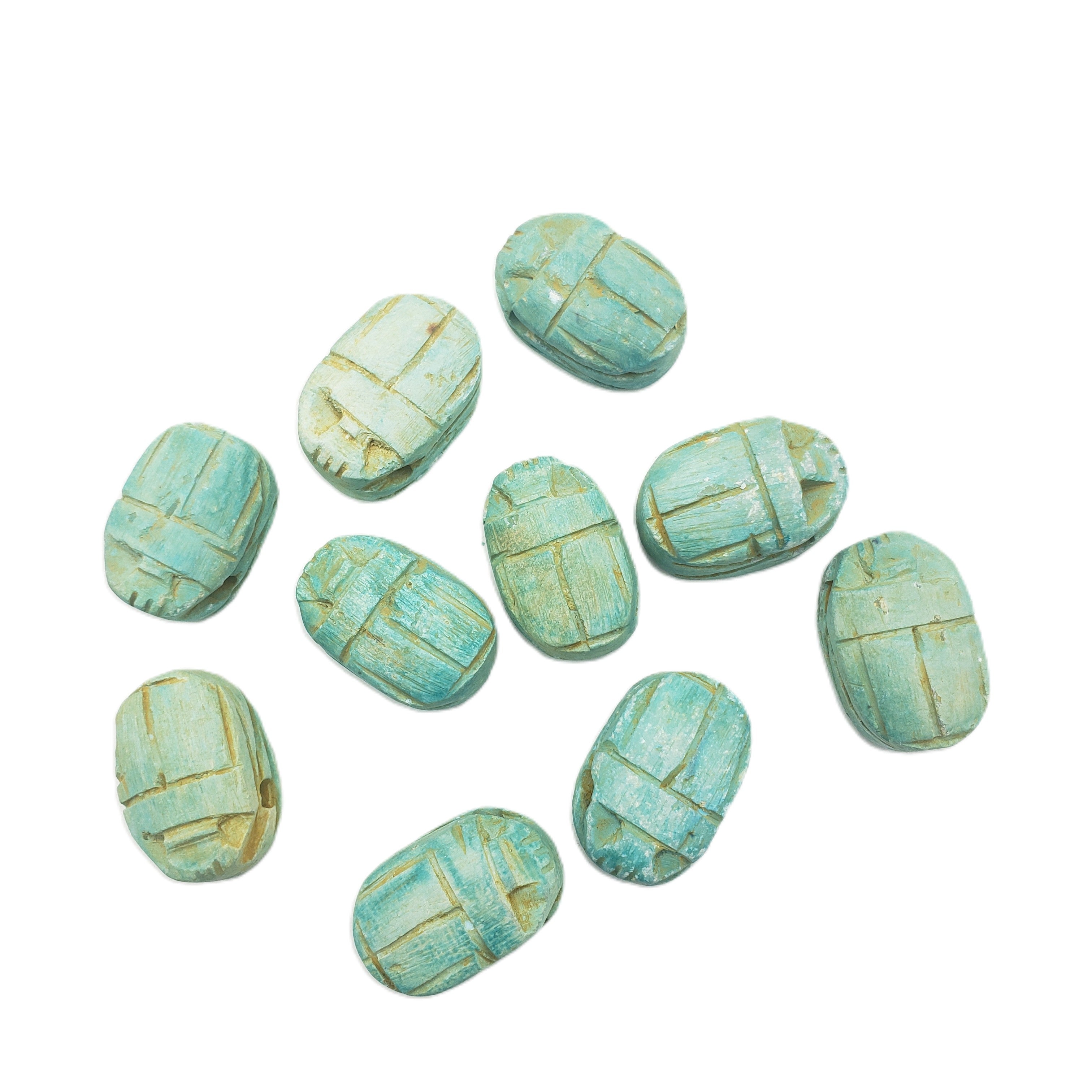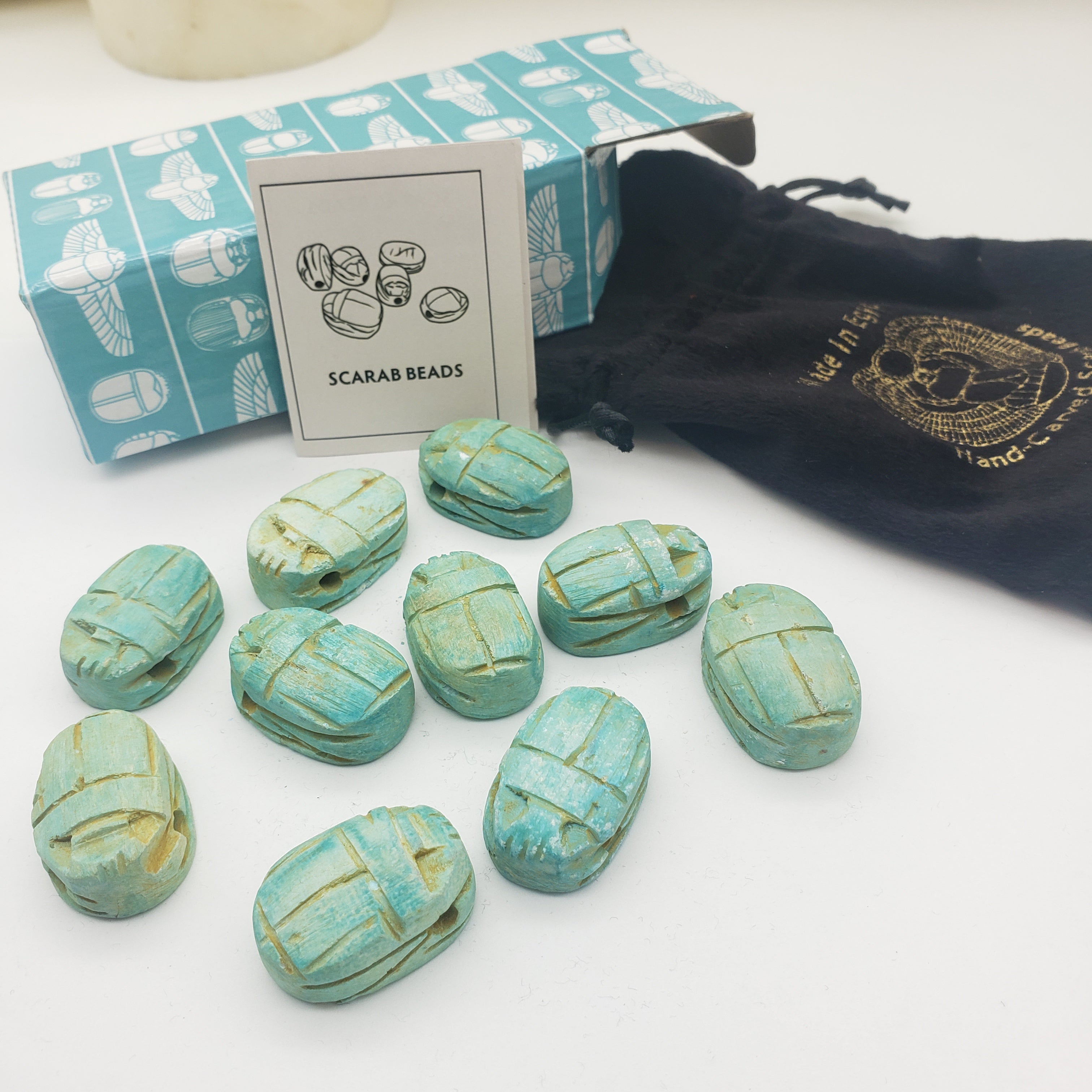 Nachhaltig in Luxor, Ägypten, von erfahrenen Kunsthandwerkern in mehreren Generationen gefertigt. Die Fayenceperlen wurden so gestaltet, dass sie die Authentizität der im Alten Ägypten gefundenen Perlen perfekt wiedergeben. Verpackt in einer dekorativen Schachtel und mit einer Informationskarte über Skarabäen ist dieses Schmuckstück das ideale Geschenk.