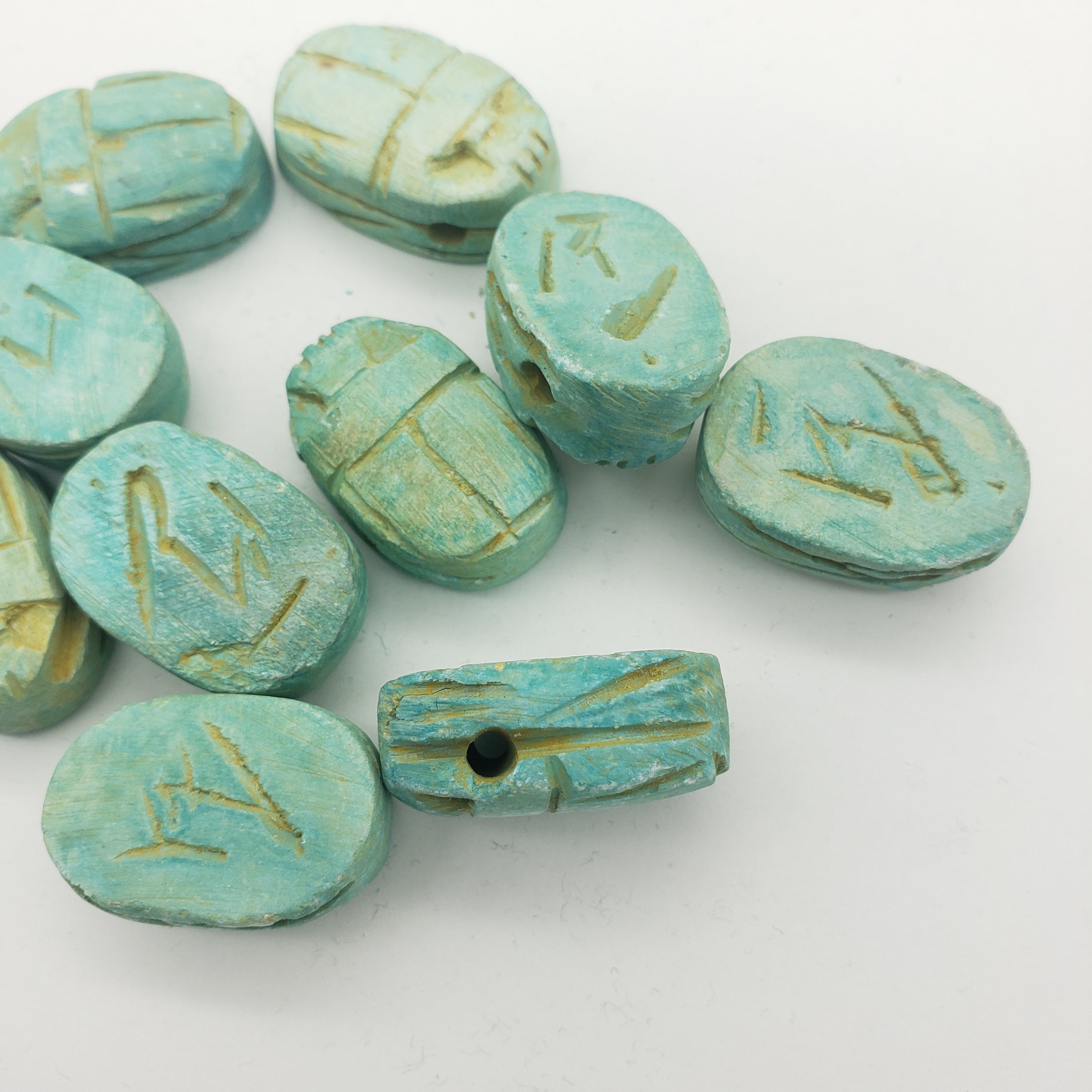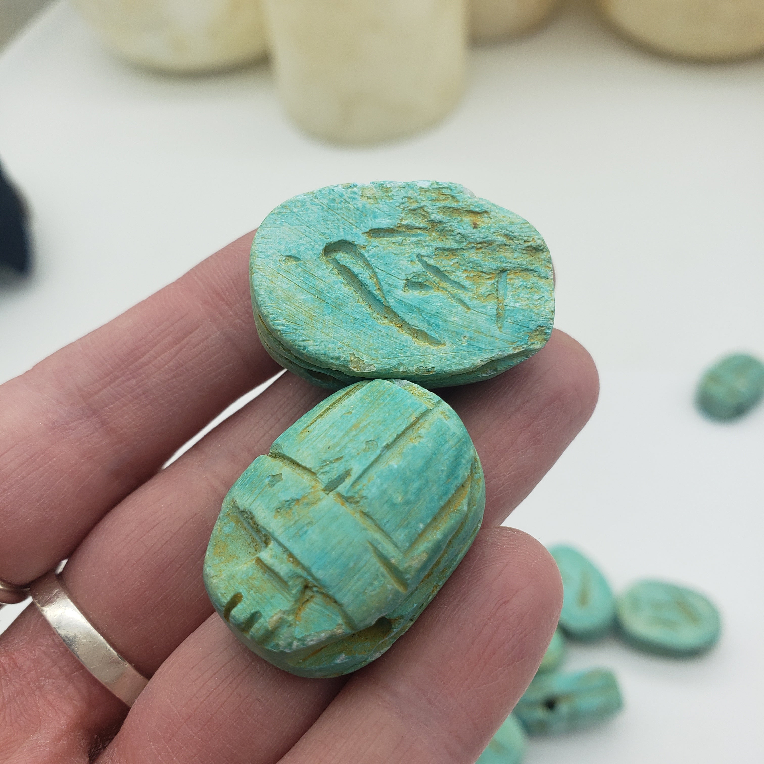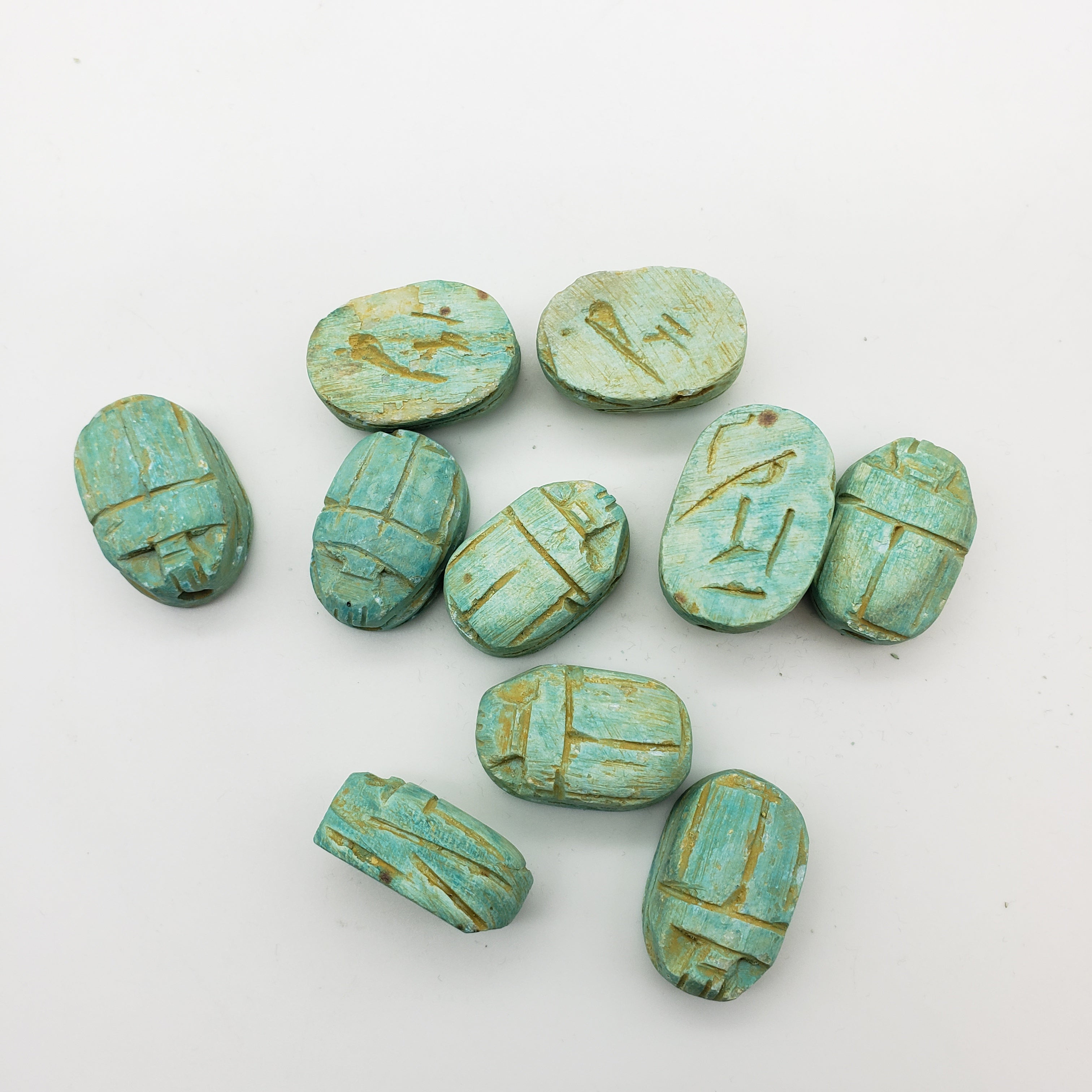 Die alten Ägypter glaubten, der Skarabäus sei die irdische Manifestation des Gottes Chepri, der täglich die Sonne über den Himmel schob, um dann zu verschwinden und am nächsten Morgen auf wundersame Weise wieder zu erscheinen. Daher gilt er als mächtiges Amulett für Selbsterschaffung, Transformation und Wiedergeburt. Lebende trugen oder bewahrten ihn auf und legten ihn den Toten ins Grab, um ihnen den Weg ins Jenseits zu ebnen. Die Unterseite war üblicherweise mit Mustern oder Hieroglyphen verziert, die als Abdrucksiegel dienten.