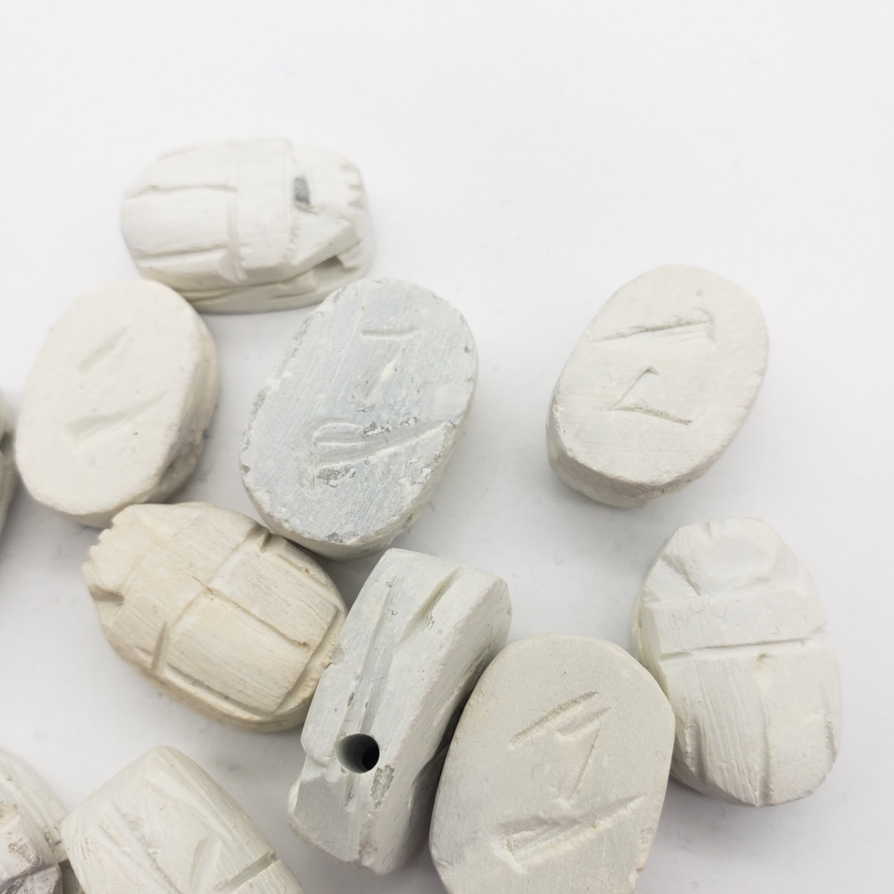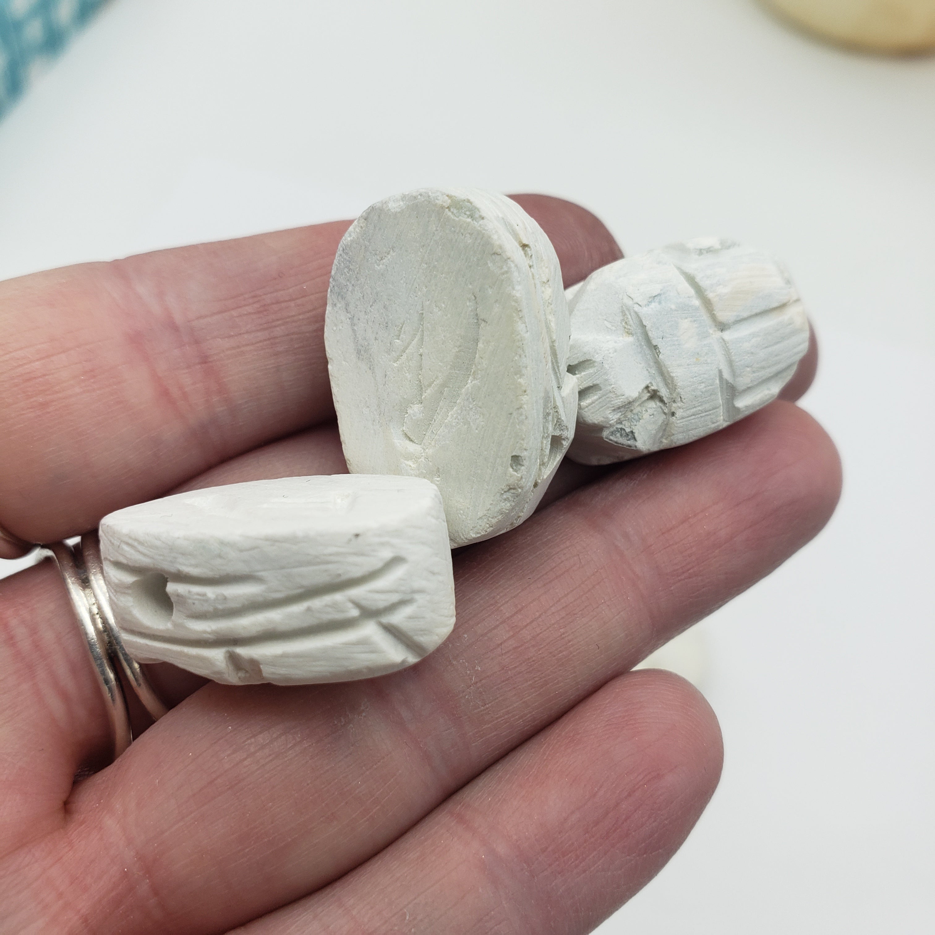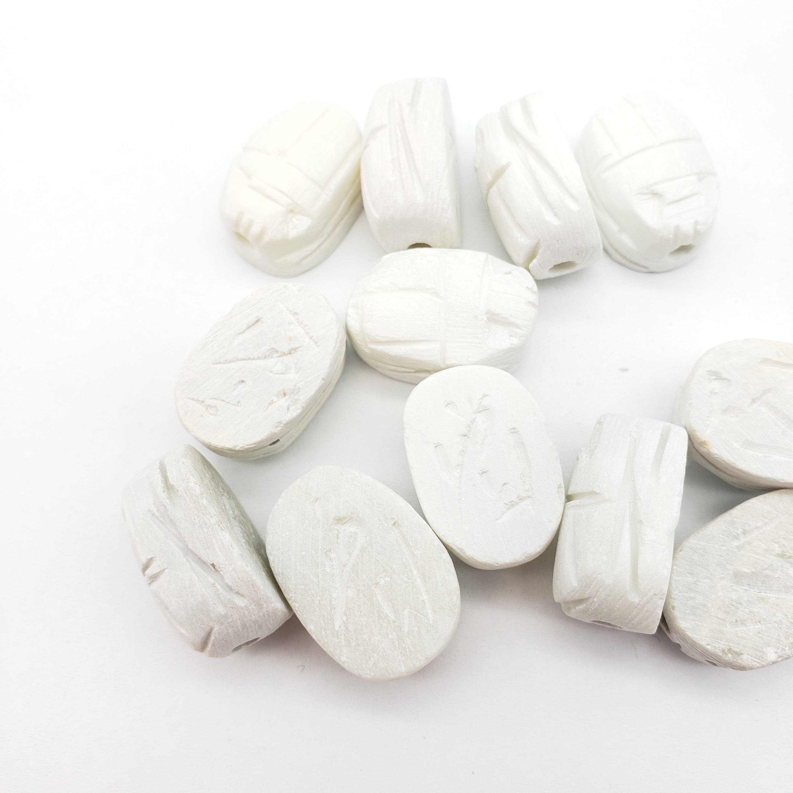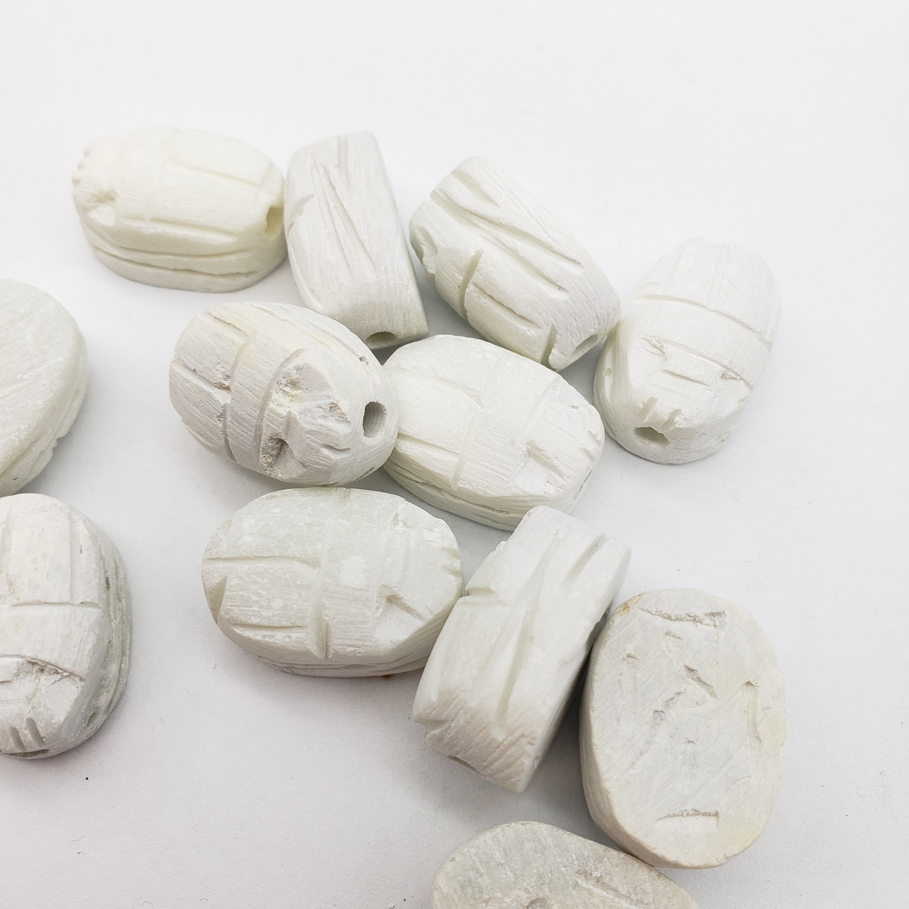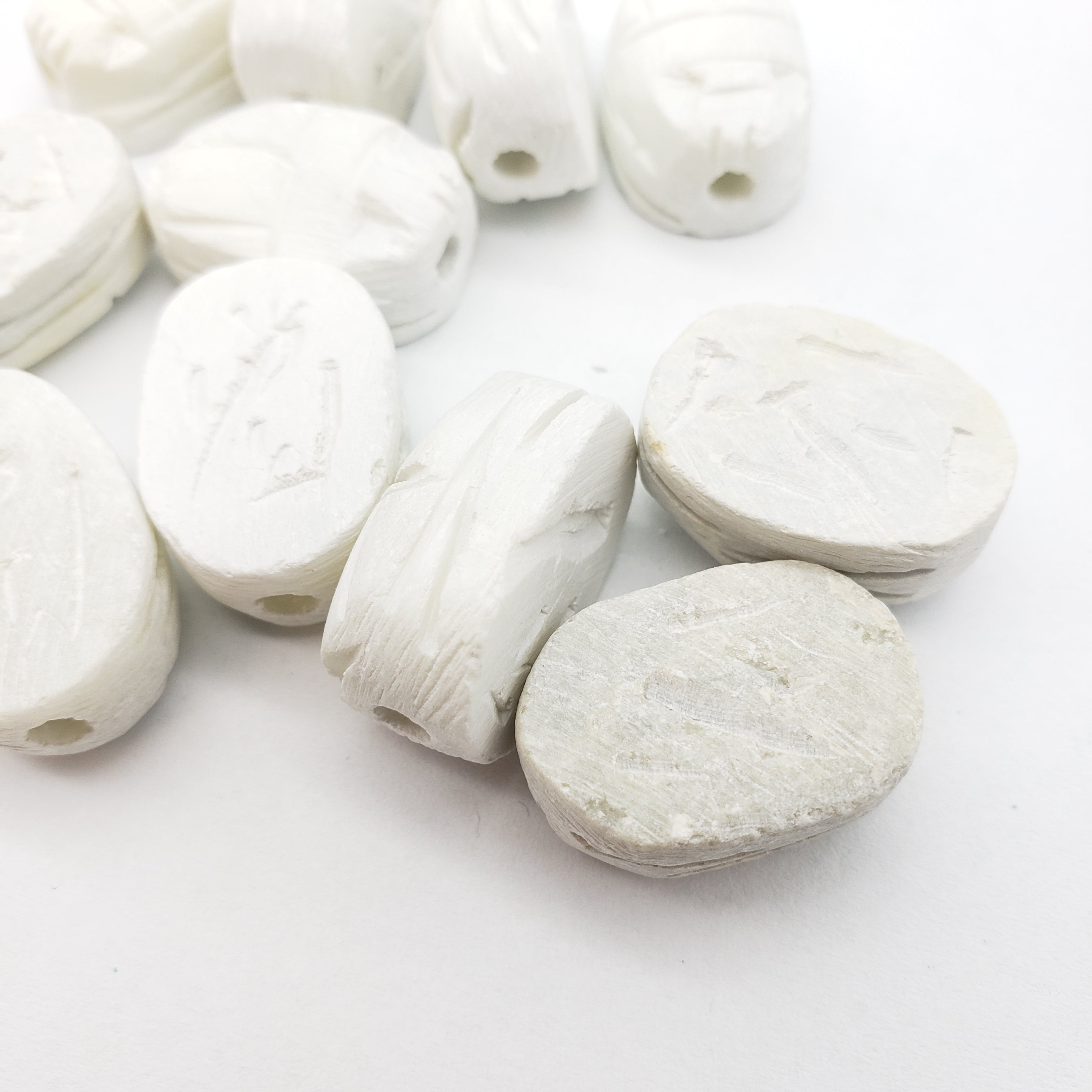 Die Größe der Perlen variiert, sie sind aber etwa 2,5 cm x 1,75 cm groß und aus Speckstein gefertigt. Die Perlen werden im 12er-Set angeboten. Sie haben die Wahl zwischen horizontaler und vertikaler Anordnung. Aufgrund der Handarbeit können Größe, Farbe, Design und Qualität leicht variieren.