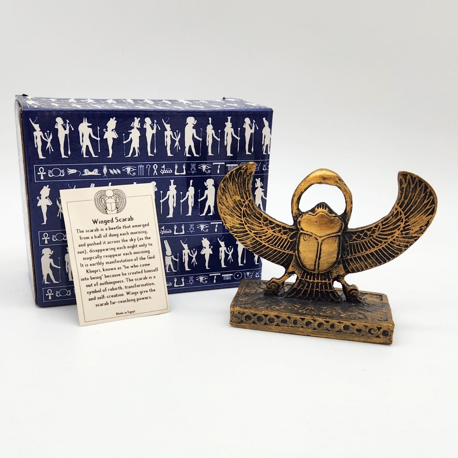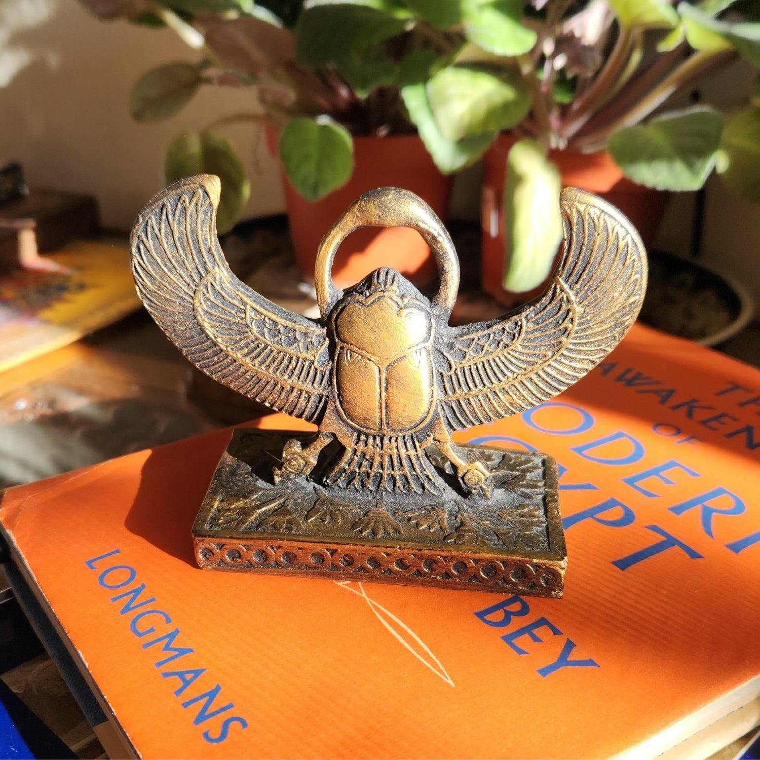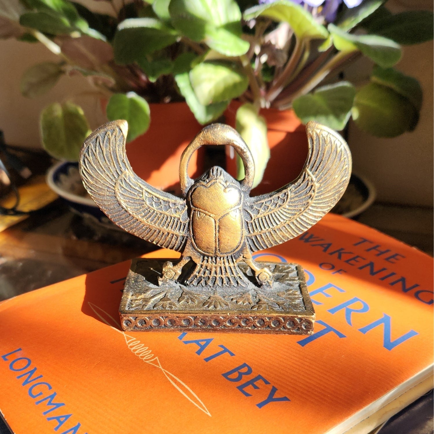 The ancient Egyptians believed that the scarab was the earthly manifestation of the god Khepri, and pushed the sun across the sky each day, only to disappear and magically re-appear the next morning. As such, it is a powerful amulet for self-creation, transformation, and re-birth.
