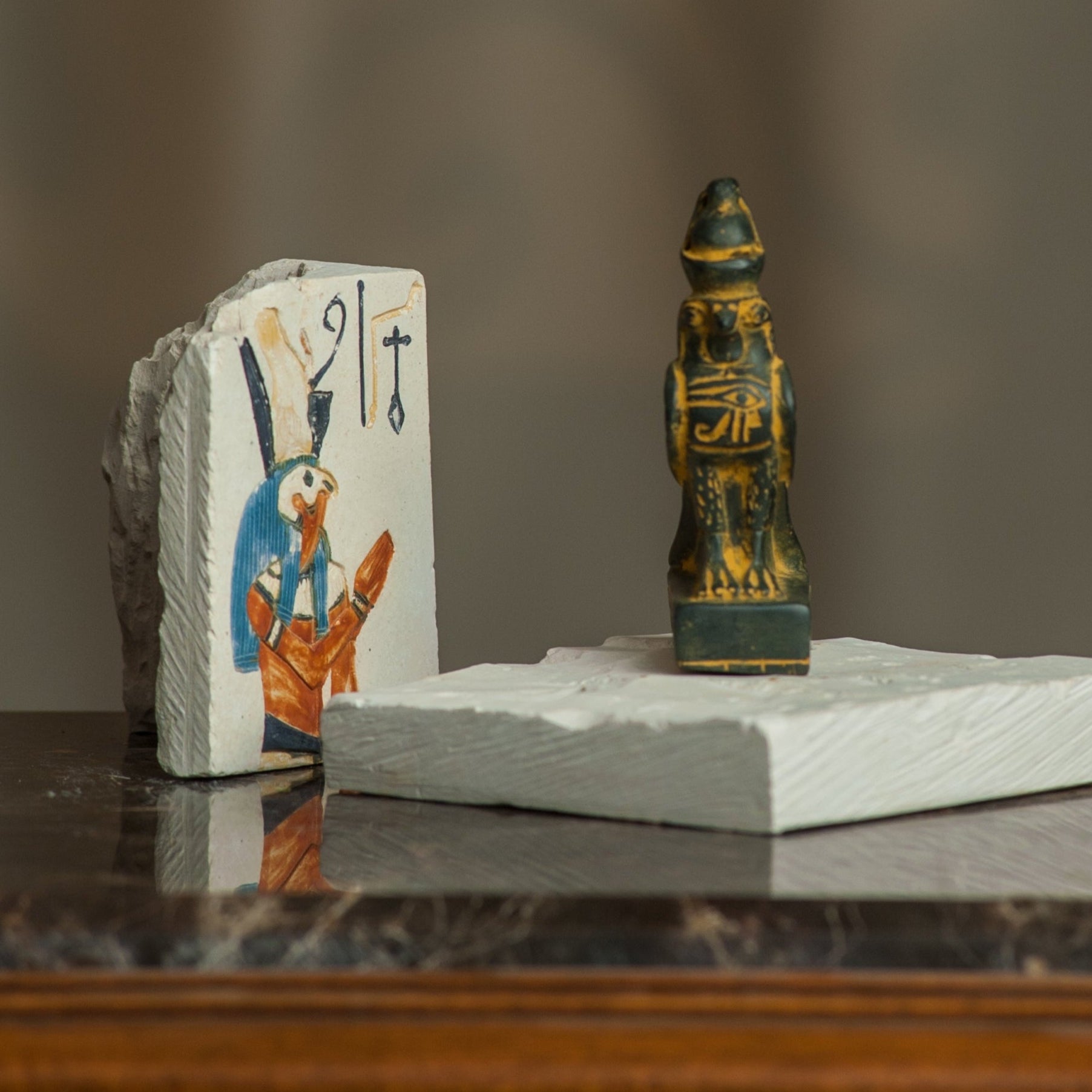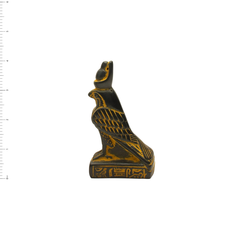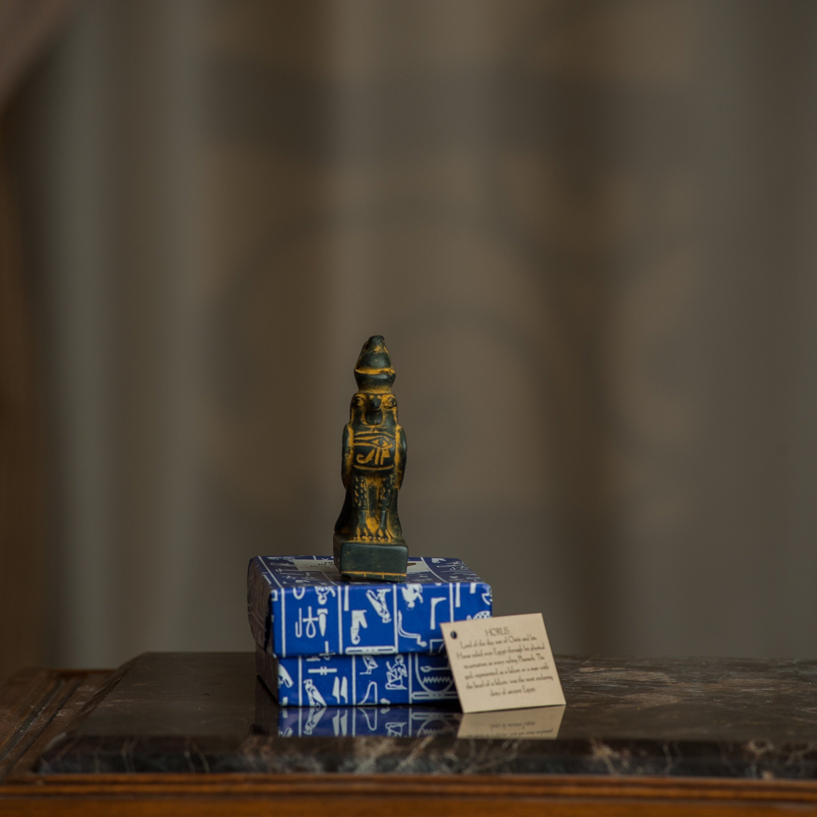 Horus wurde entweder als Mann mit Falkenkopf oder als Falke dargestellt – hier ist er eine 10 cm große Statue. Diese Figur besteht aus handgeformtem Polymer und hat ein Horusauge als Symbol, das in die Brust geschnitzt ist. Die Statue hat gelbes Pigment, das die Details der Statue hervorhebt. Hergestellt in Ägypten! Diese Statue wird in einer Hieroglyphenschachtel geliefert – perfekt als Geschenk.