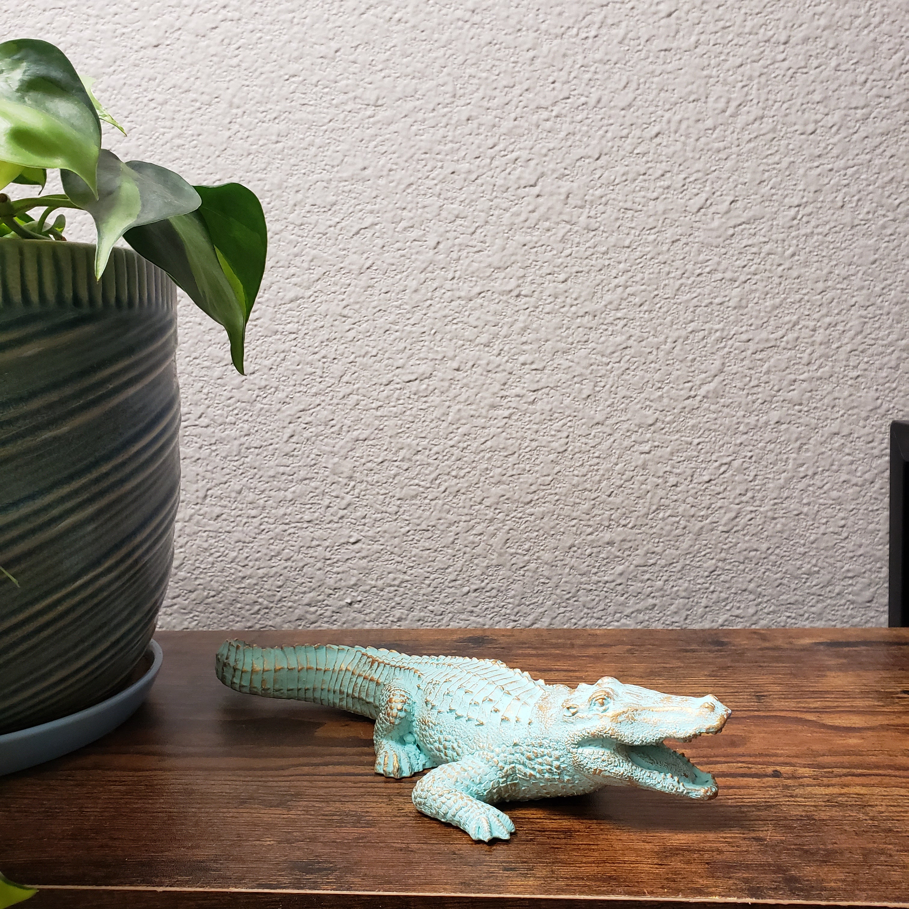 Diese auffällige Skulptur ist ideal für Naturliebhaber, Sammler und alle, die ihrem Haus oder Garten einen Hauch von Wildnis verleihen möchten. Sie ist nicht nur Dekoration – sie ist ein Gesprächsthema, das den ungezähmten Geist des Nils heraufbeschwört.