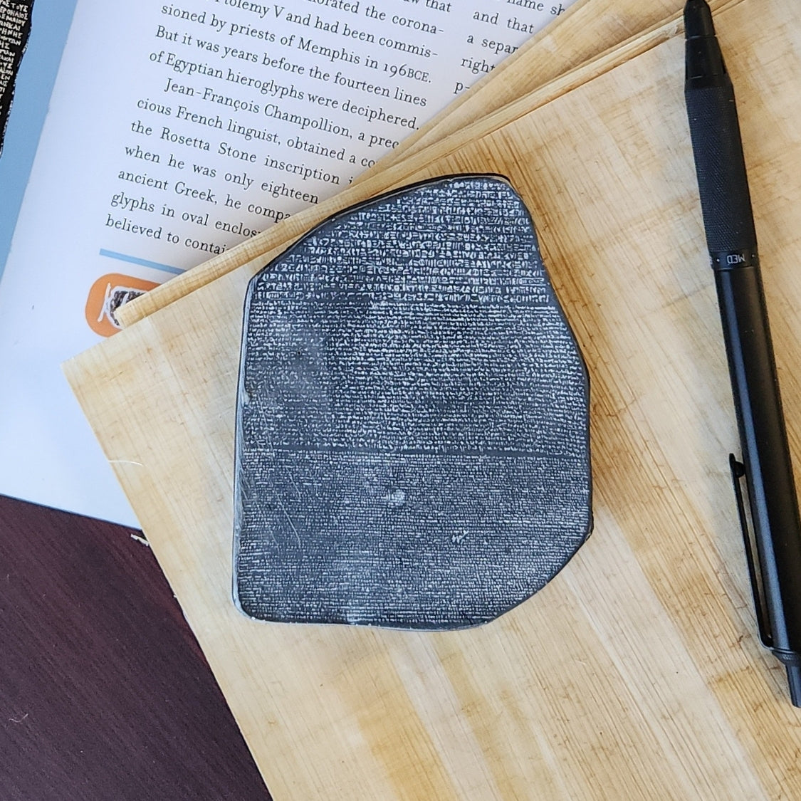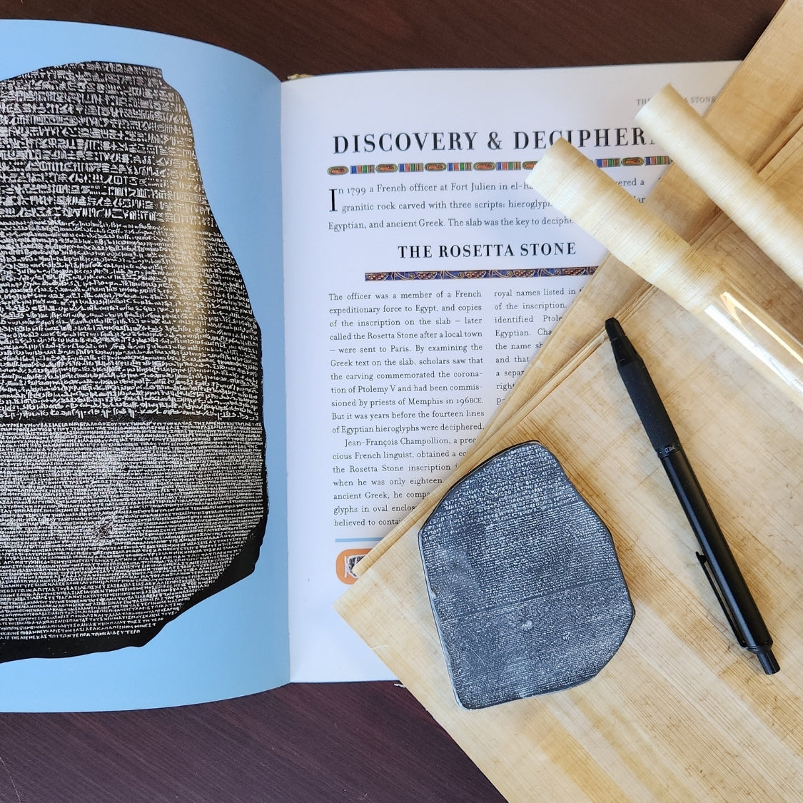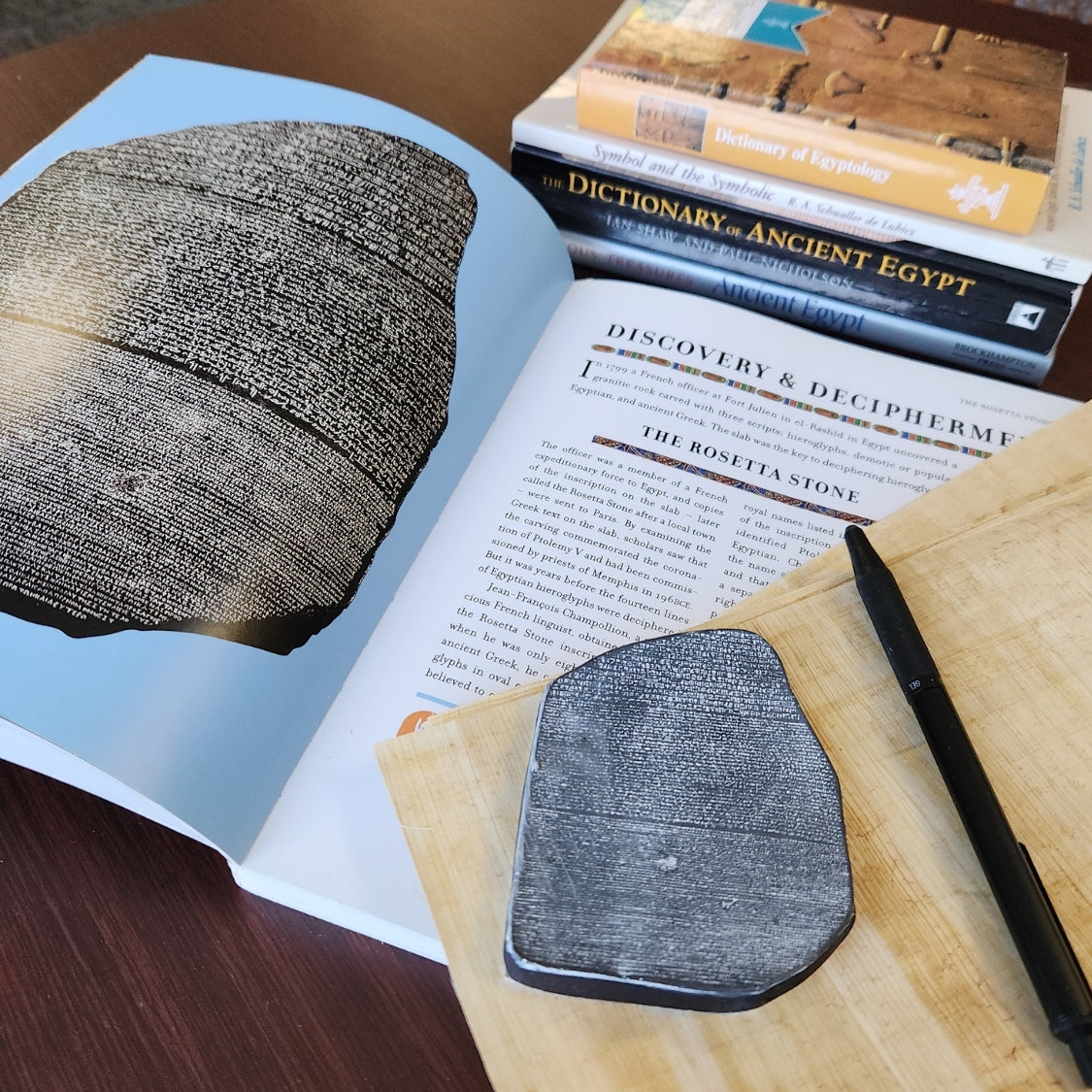 Der Stein von Rosetta, ein altägyptischer Stein mit Inschriften in verschiedenen Sprachen und Schriften, ermöglichte durch seine Entzifferung das Verständnis der Hieroglyphenschrift. Der unregelmäßig geformte Stein aus schwarzem Granit ist etwa 1,14 Meter lang und 72 Zentimeter breit. Er stammt aus der Antike und ist zerbrochen. Gefunden wurde er in der Nähe der Stadt Rosetta, etwa 56 Kilometer nordöstlich von Alexandria. Entdeckt wurde er im August 1799 von einem Franzosen namens Bouchard oder Boussard. Nach der französischen Kapitulation Ägyptens im Jahr 1801 gelangte er in britischen Besitz und befindet sich heute im Britischen Museum in London.