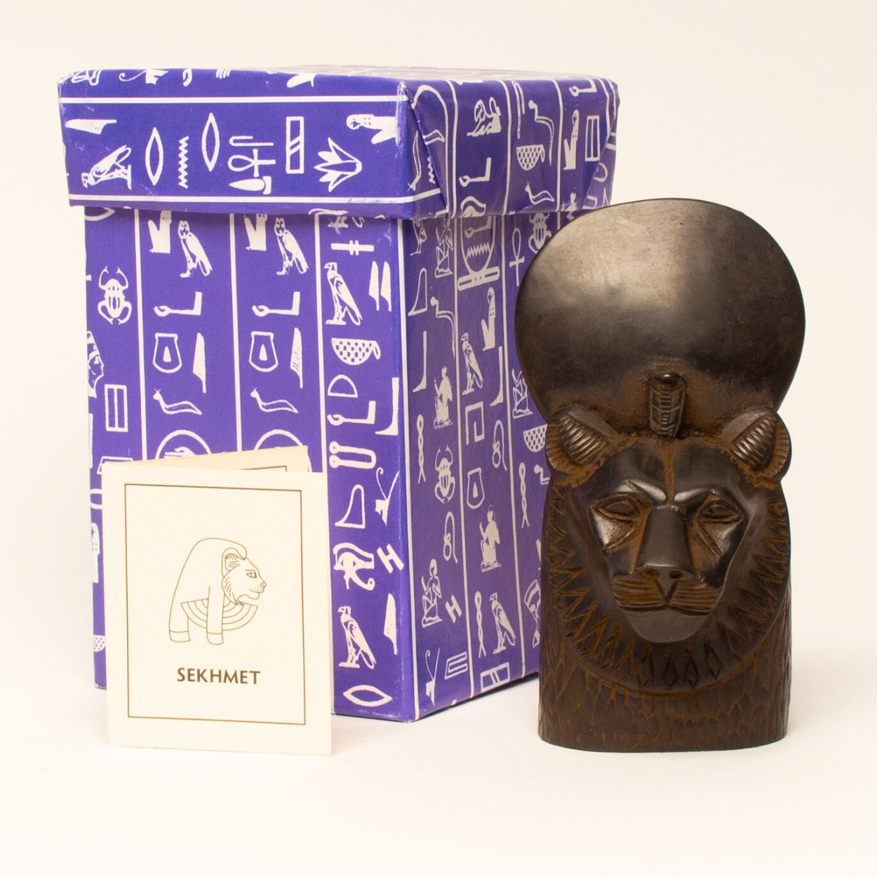 Sekhmet ist eine Sonnengöttin, die manchmal als Tochter des Ra bezeichnet und oft mit den Göttinnen Hathor und Bastet in Verbindung gebracht wird. Sie trägt den Uraios, was sie mit Wadjet und dem Königshaus assoziiert, sowie die Sonnenscheibe.