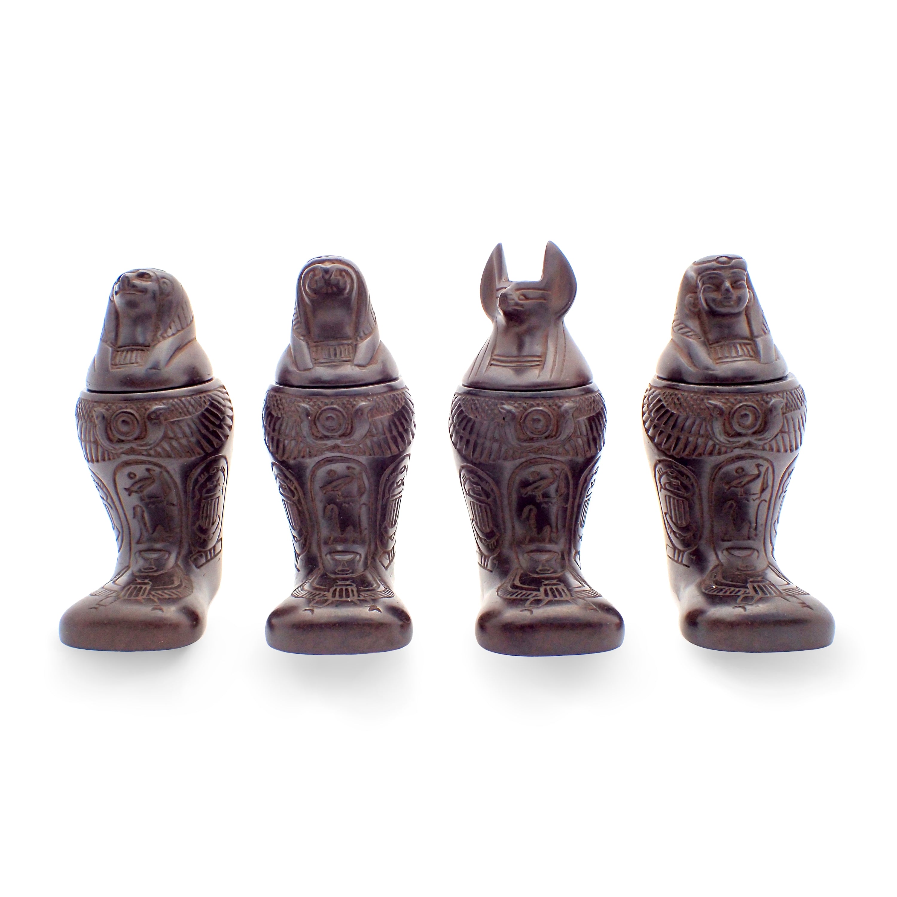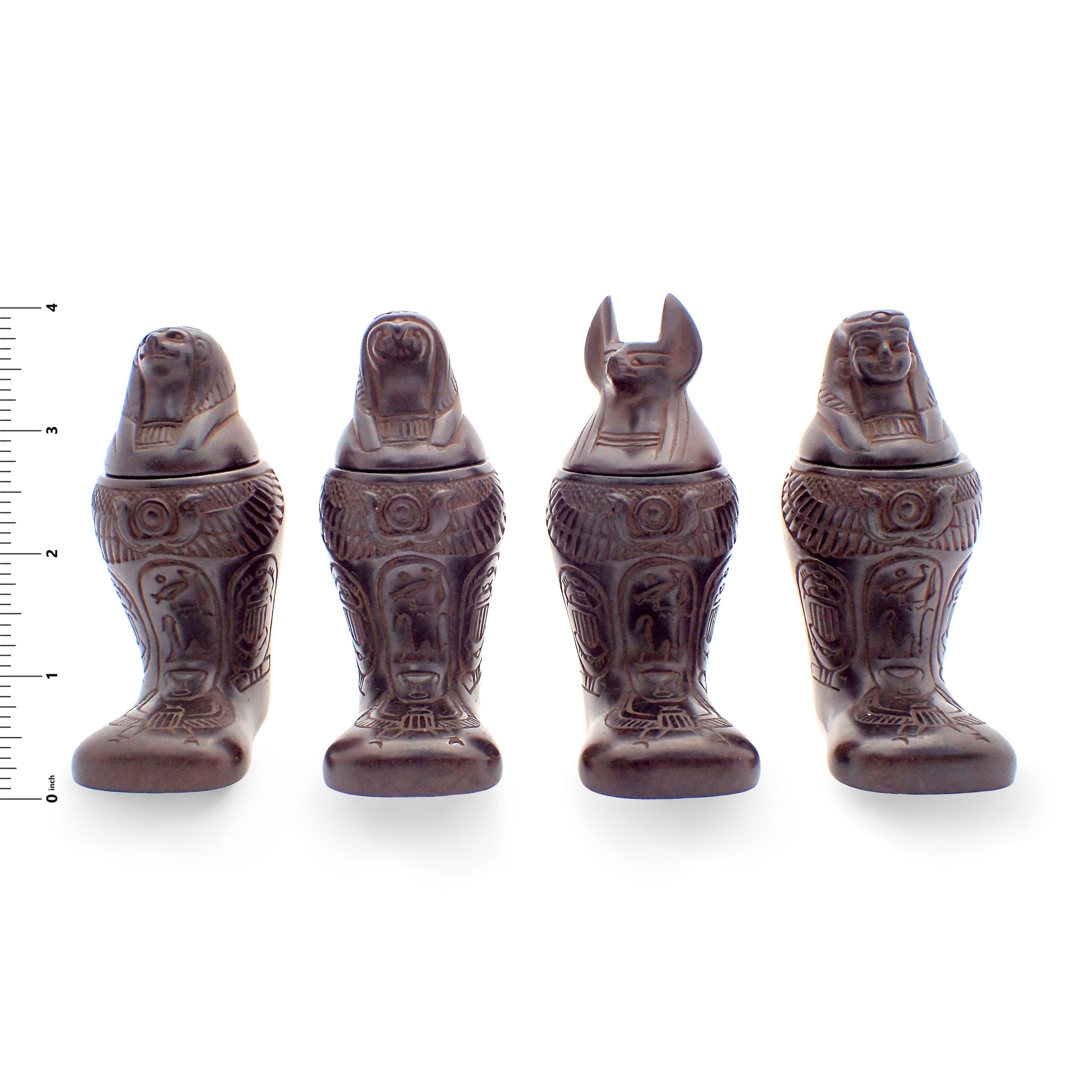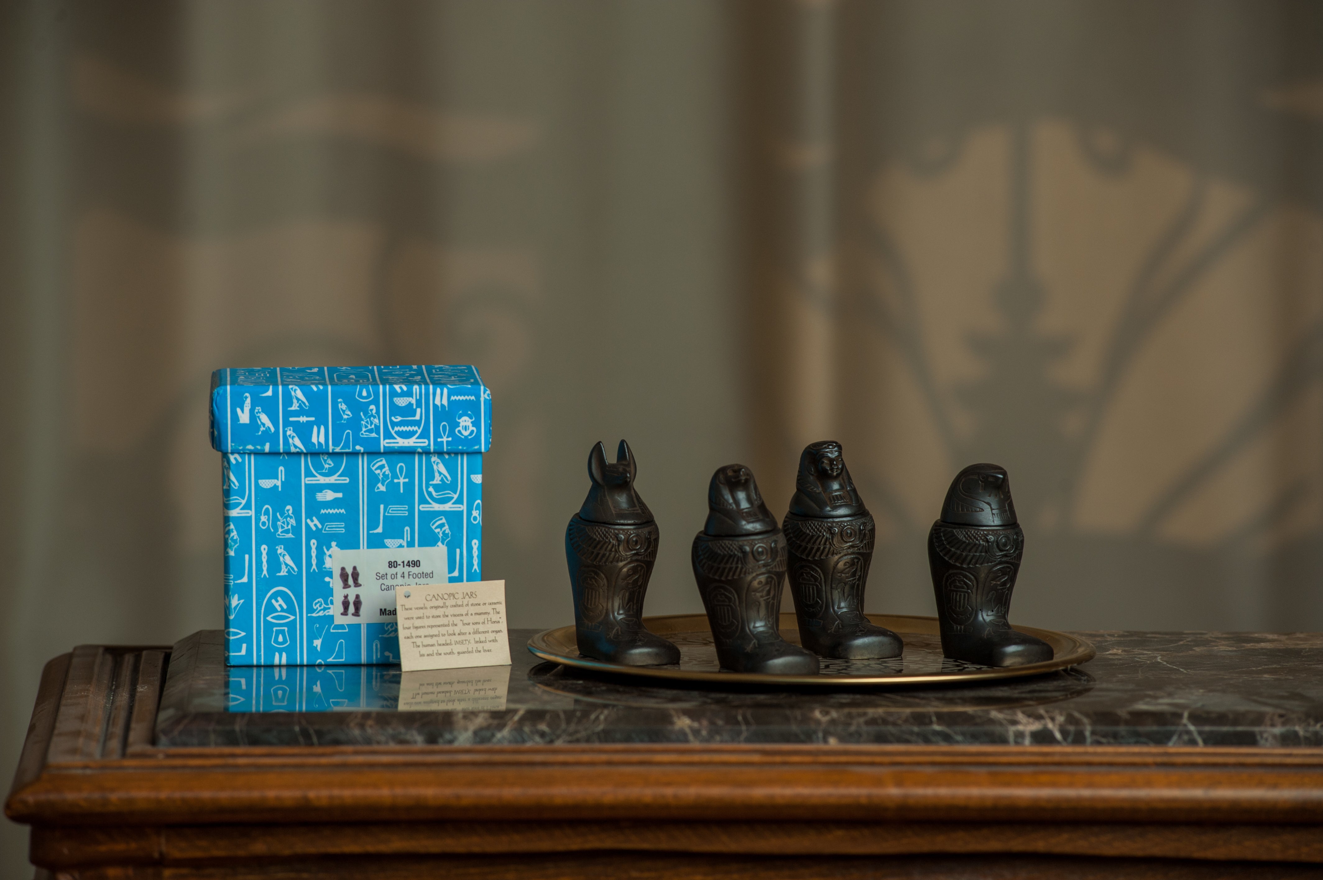 Canopic Jars were used by the ancient Egyptian during the rituals of mummification processes. These were used as containers in which to hold the internal organs of the deceased that was going to be mummified. The jars had lids or stoppers that were shaped as the head of one of the minor funerary deities known as the Four Sons of Horus. It was the job of these four deities to protect the internal organs of the deceased; the Ancient Egyptians firmly believed that the deceased required his or her organs in order to be reborn in the Afterlife.