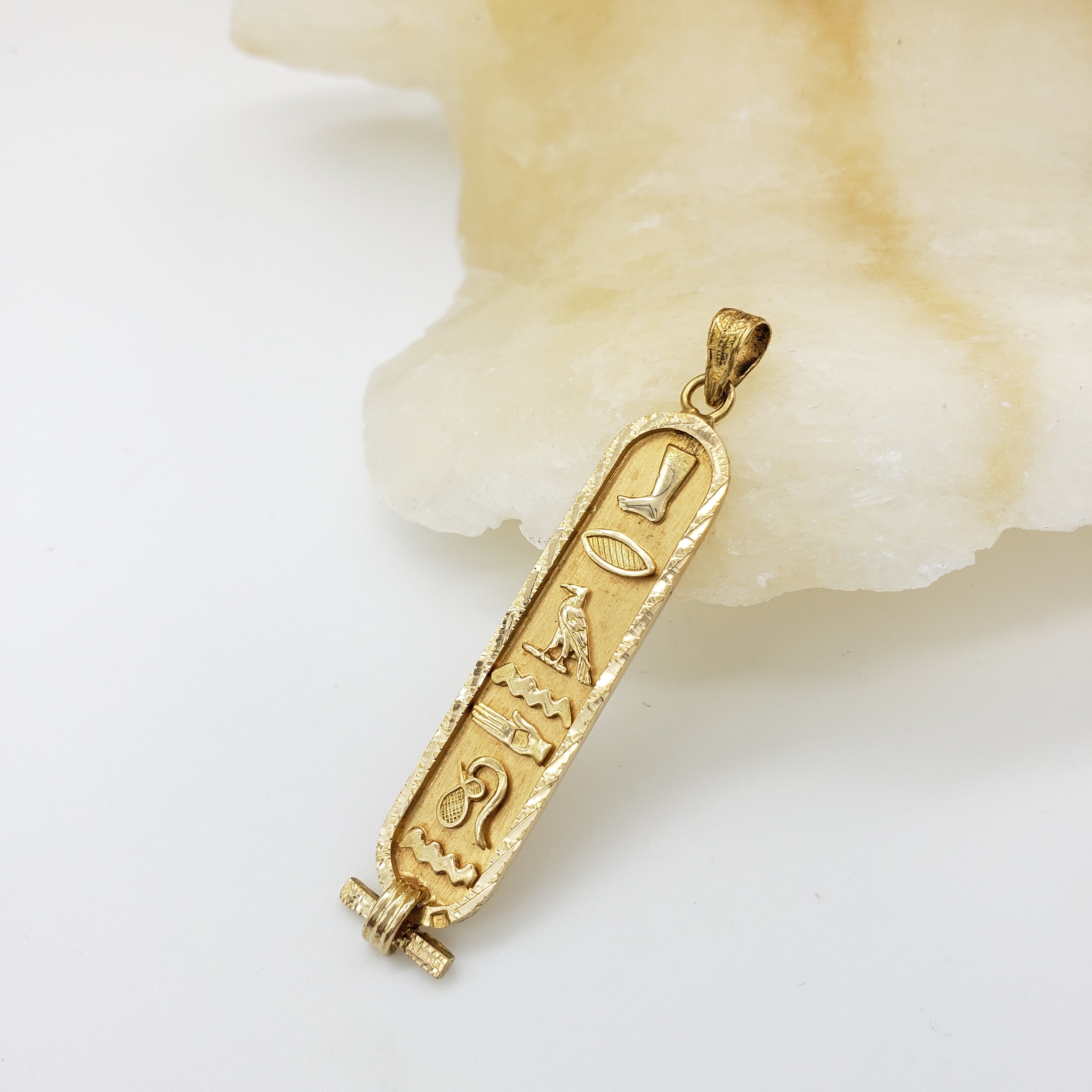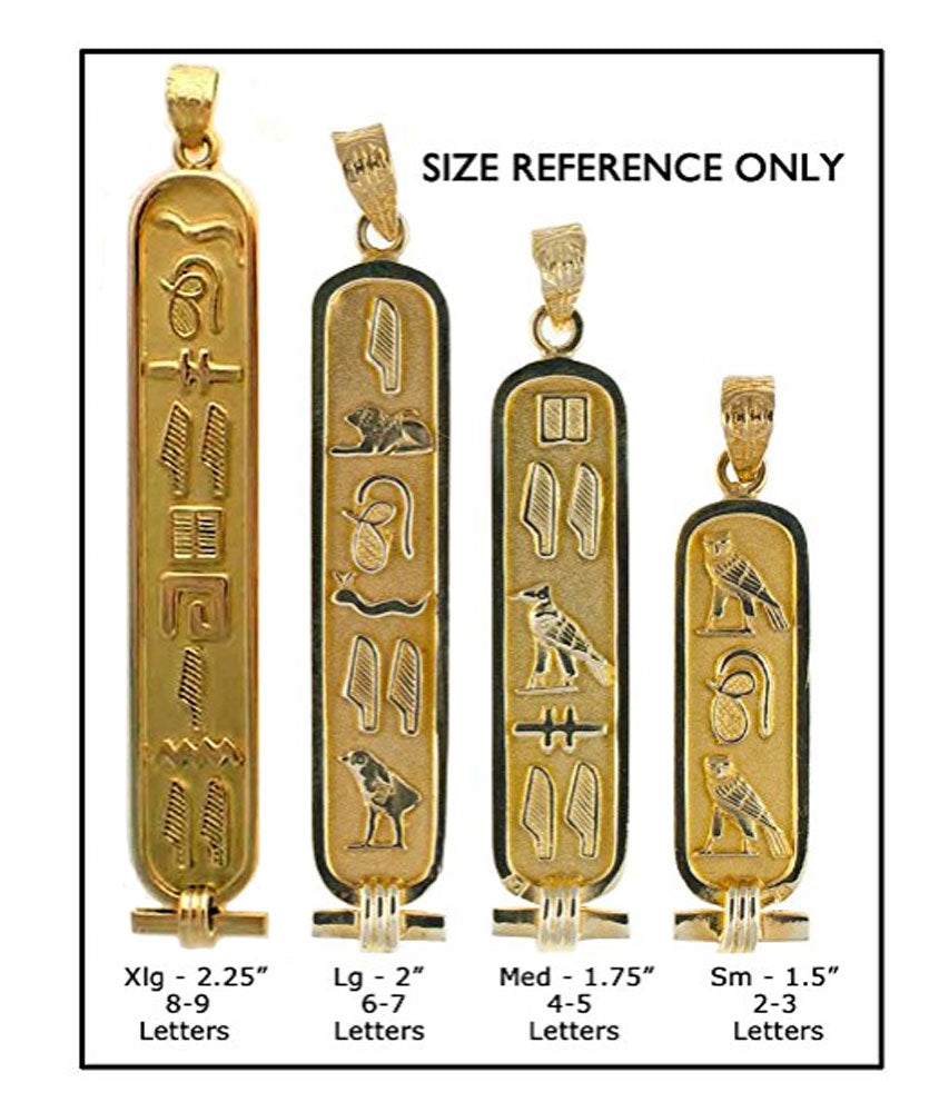 NOTE: You may choose to add extra hieroglyphics if there is room on your cartouche. To do so, please choose from the images below and add the corresponding number or symbol to your name in the personalization box. (Ex. "KATIE6").