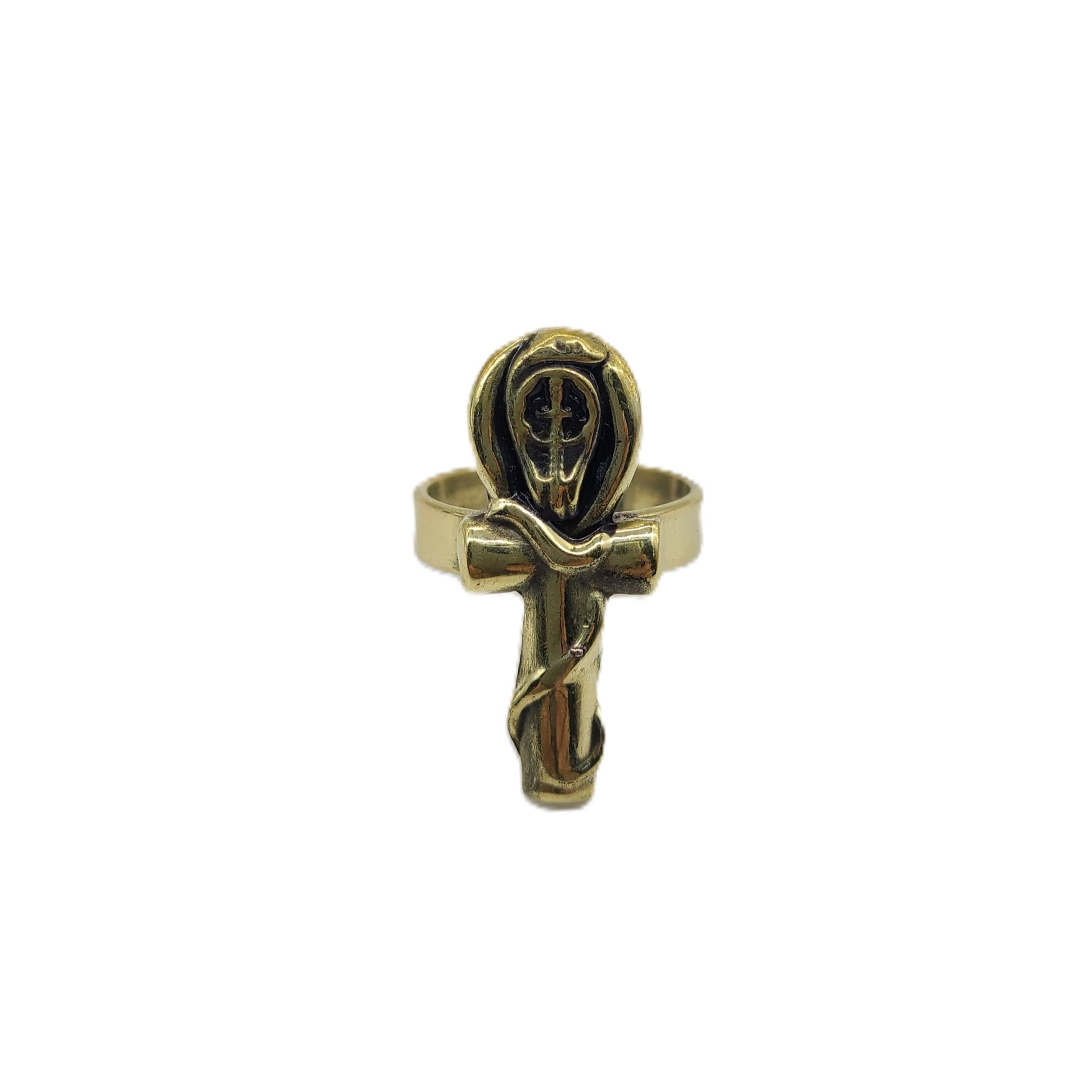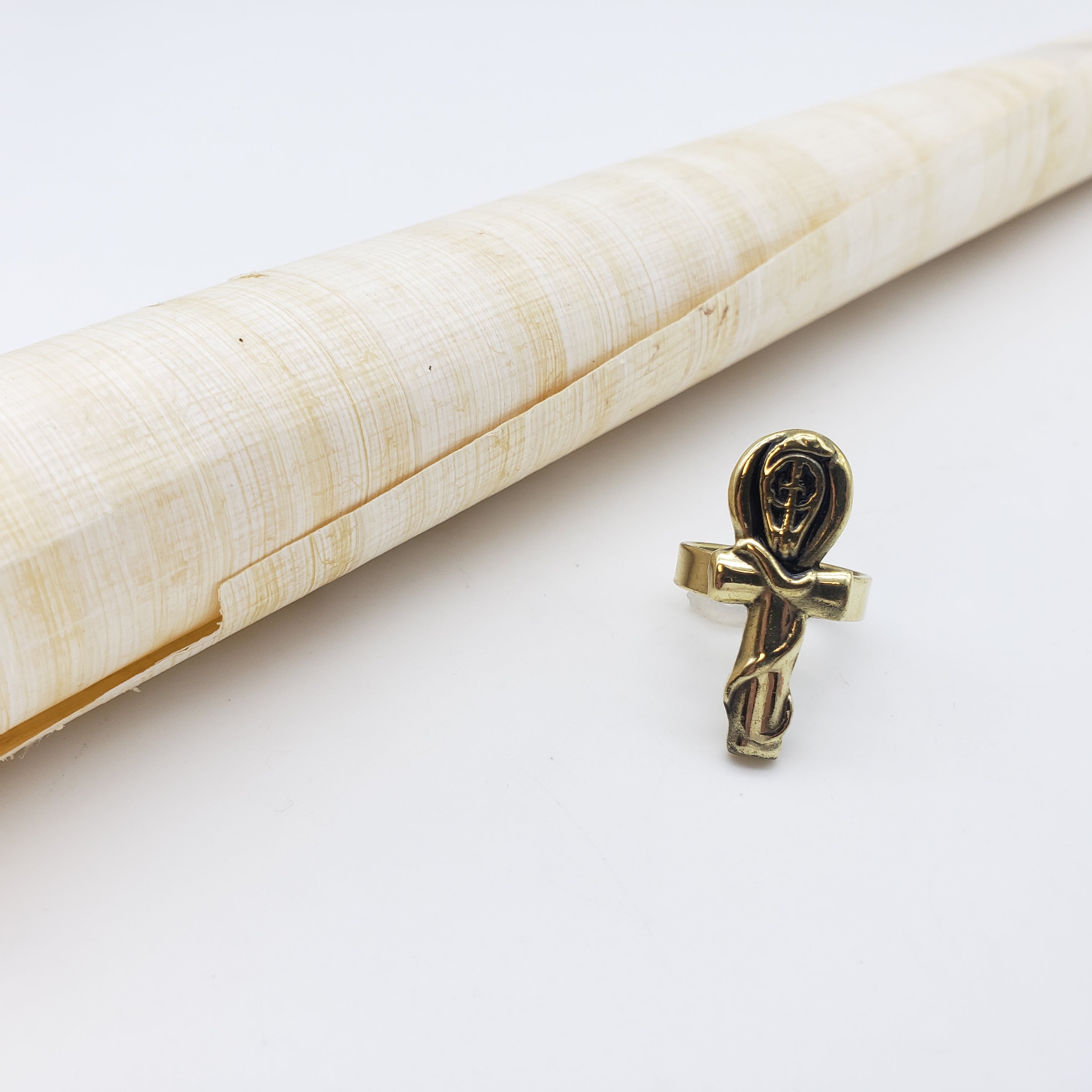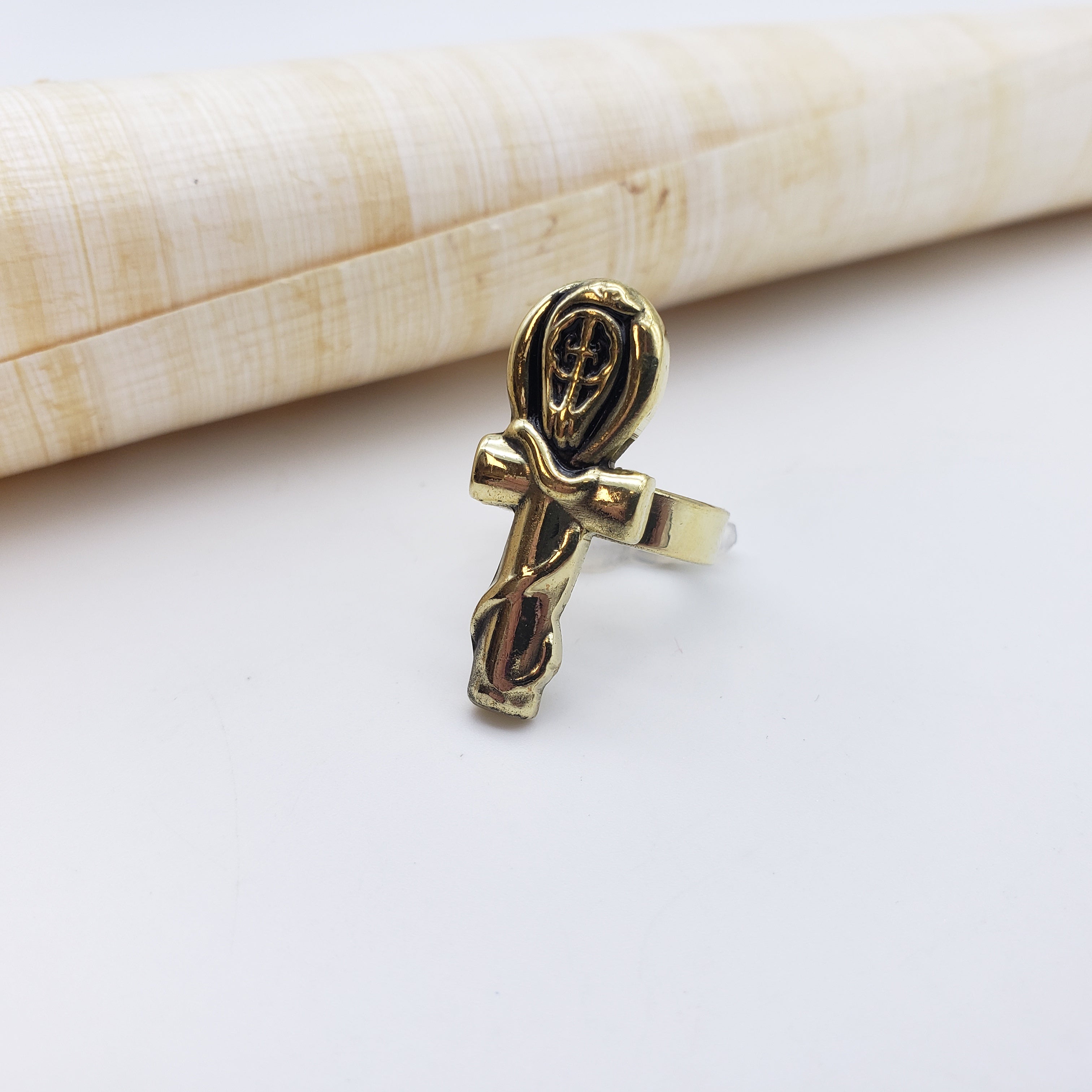 This adjustable ankh ring was made in Cairo, Egypt! This ring is made from gold-plated brass and it is adjustable.
