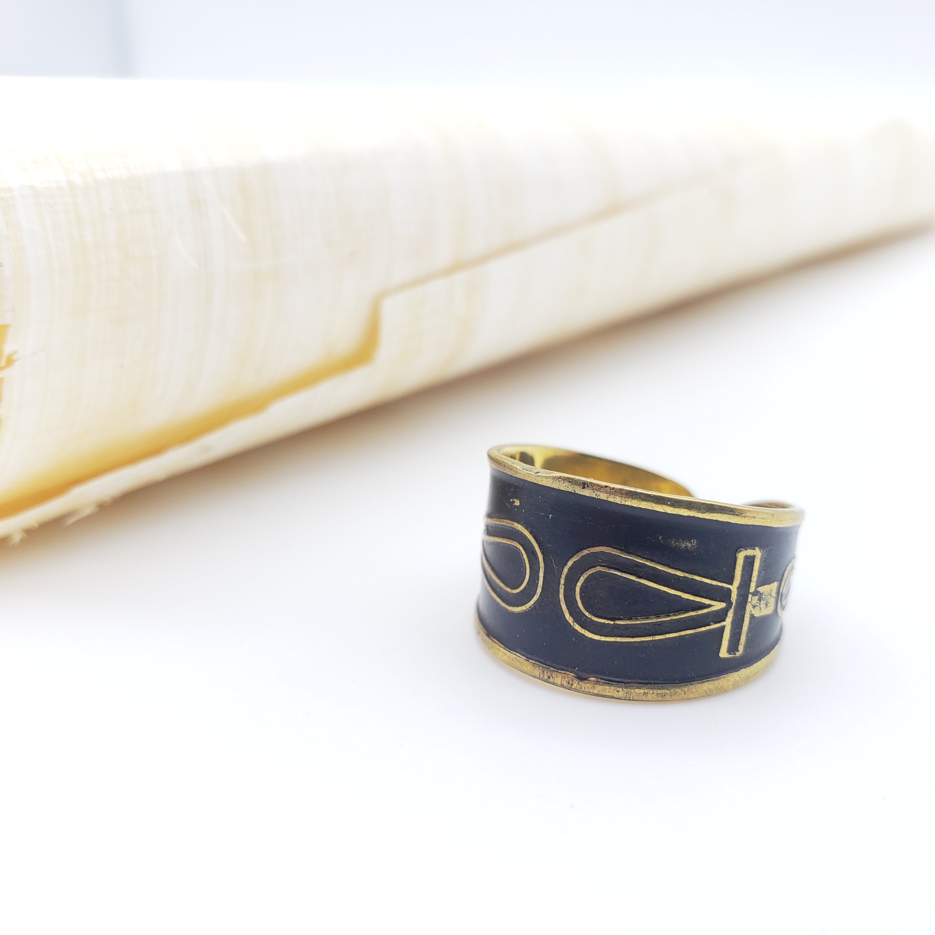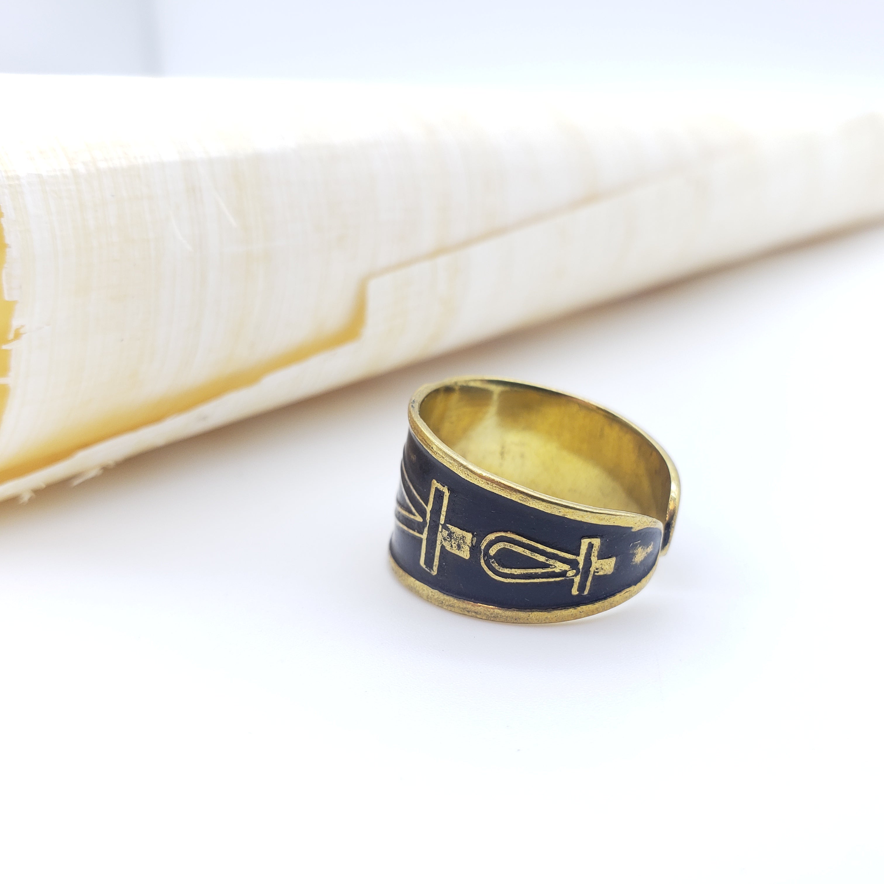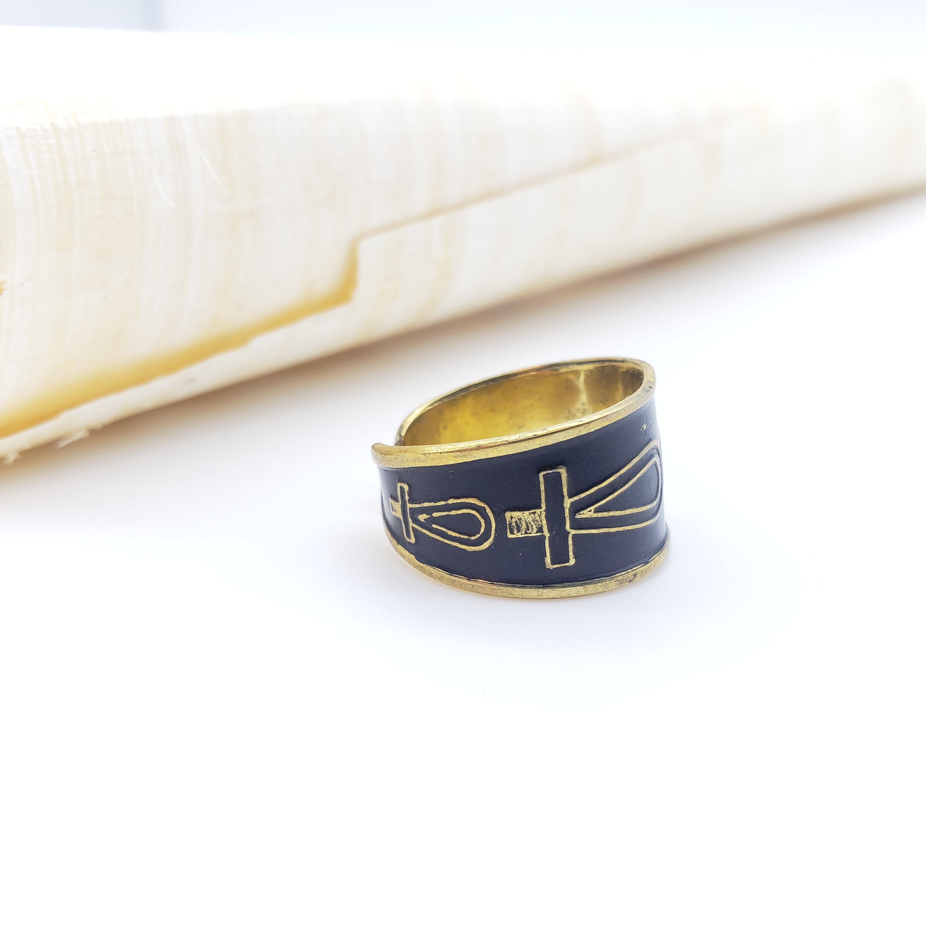 This adjustable ankh ring was made in Cairo, Egypt! This ring is made from gold-plated brass and it is adjustable.
