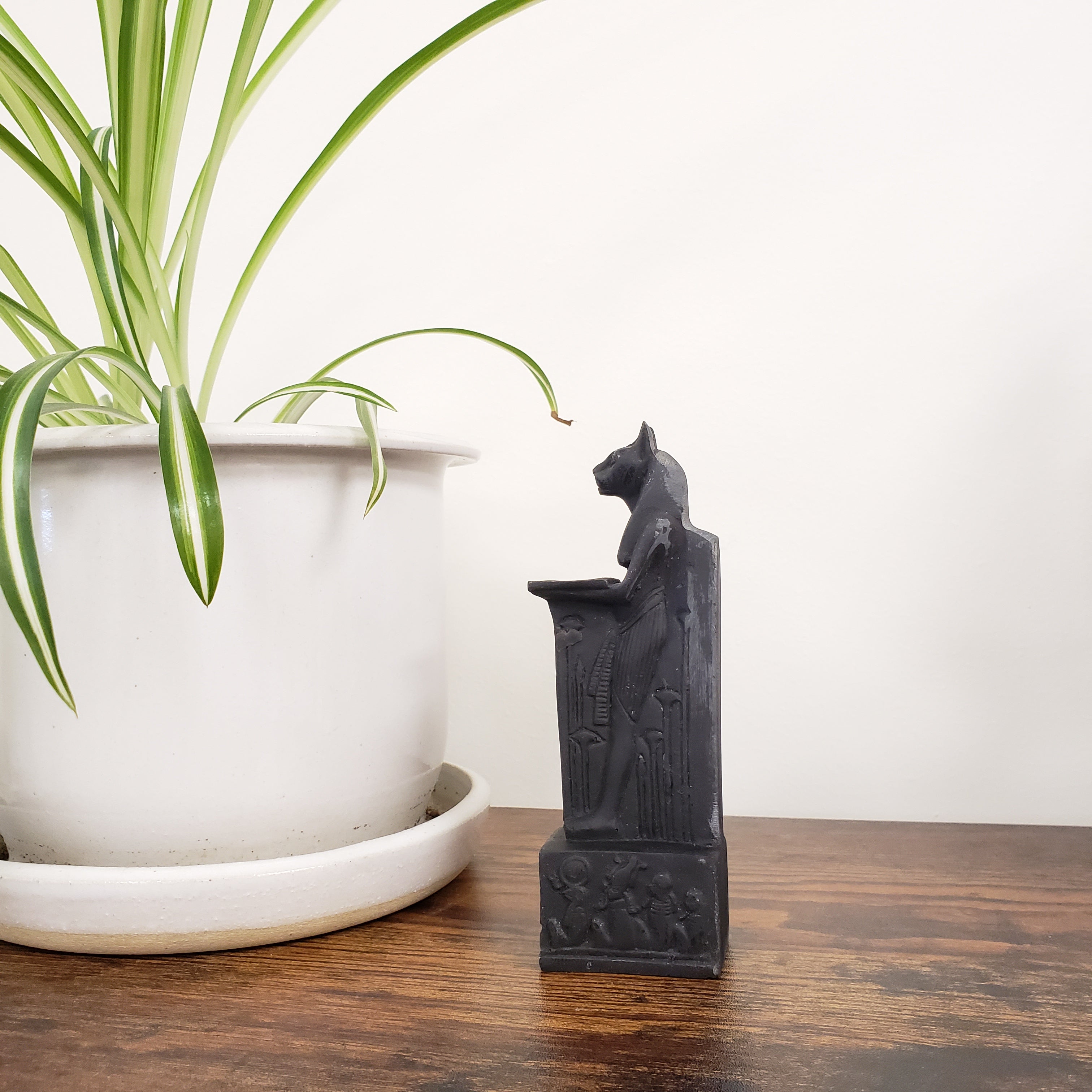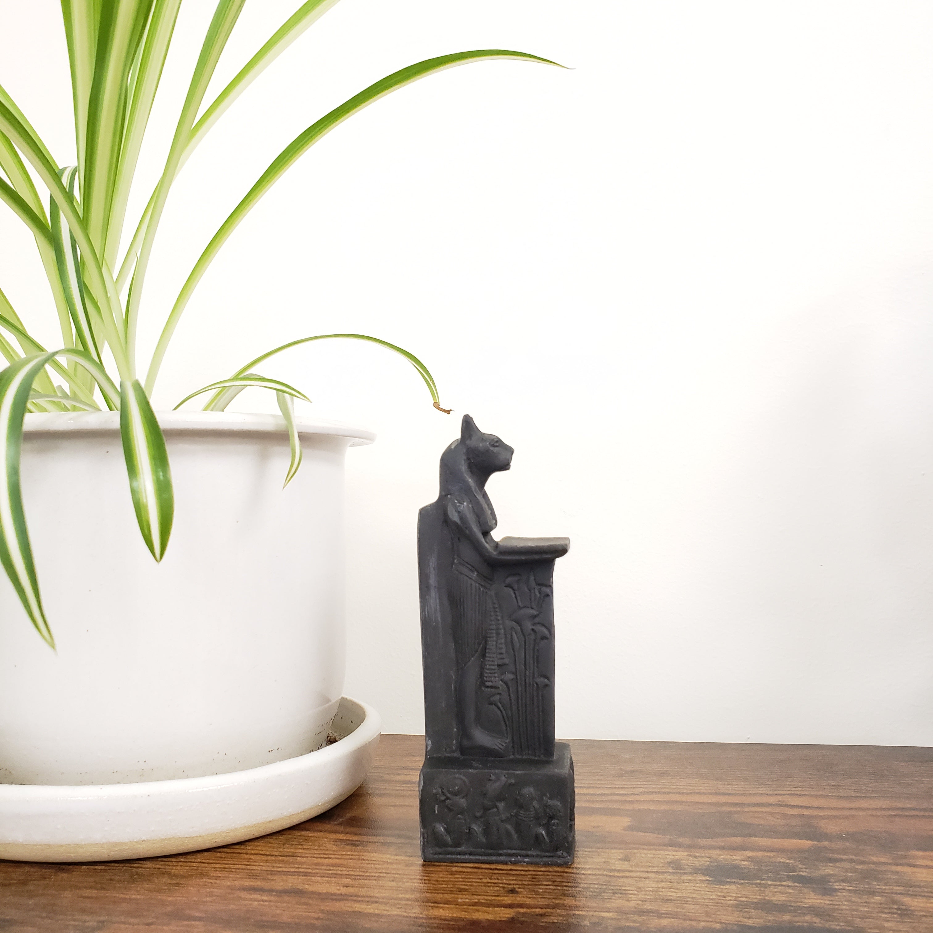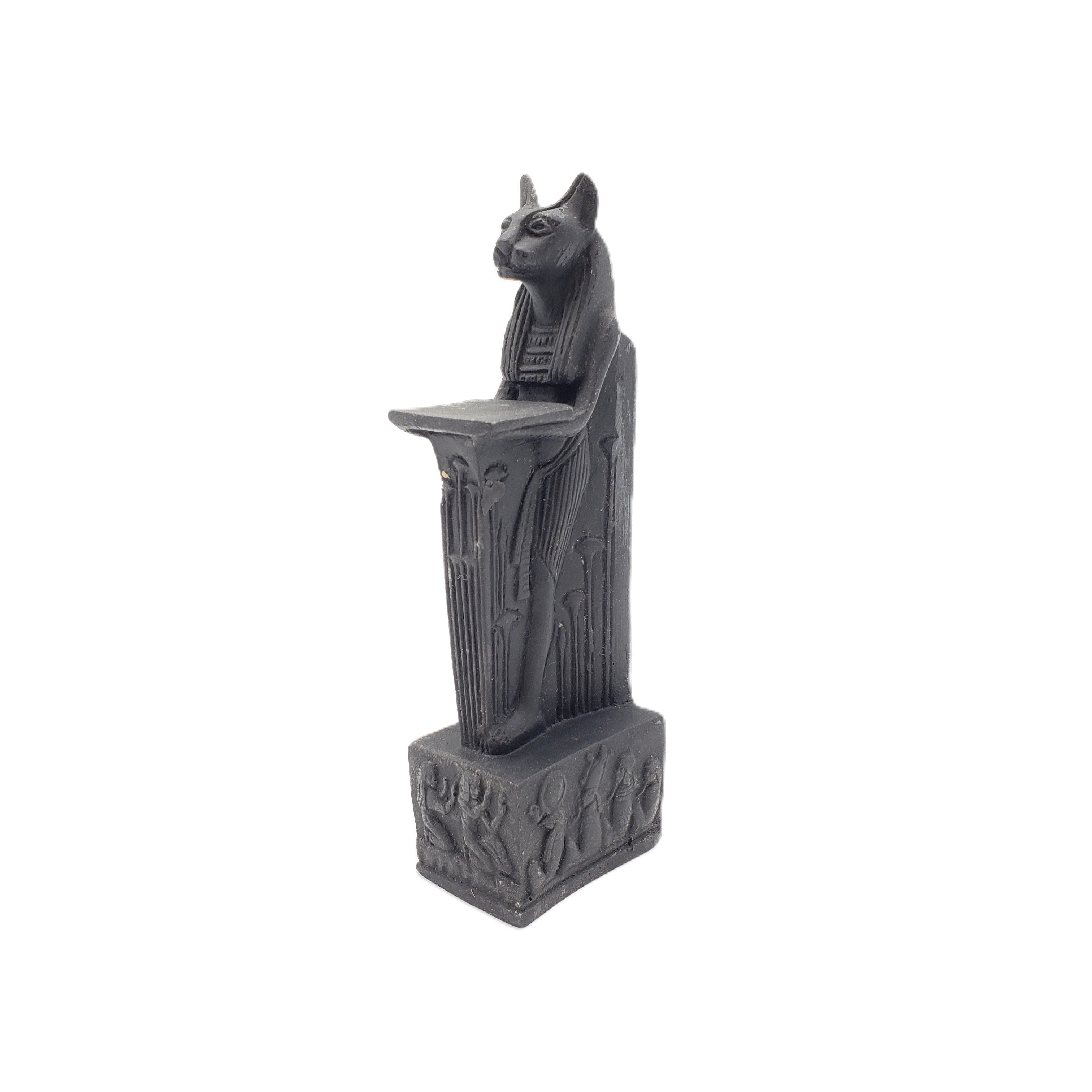 The goddess of plenty and joy, the cat Bastet represents the protective aspect of female power. Bastet is the daughter of Ra, the Sun God. She is aligned with the lioness and also represents the attributes of ferocious protection. Bastet is associated with the home and dancing. The Egyptians found cats fascinating, even regarding them as godlike. Because cats were deeply respected, they were often mummified and even buried in great tombs with their owners.