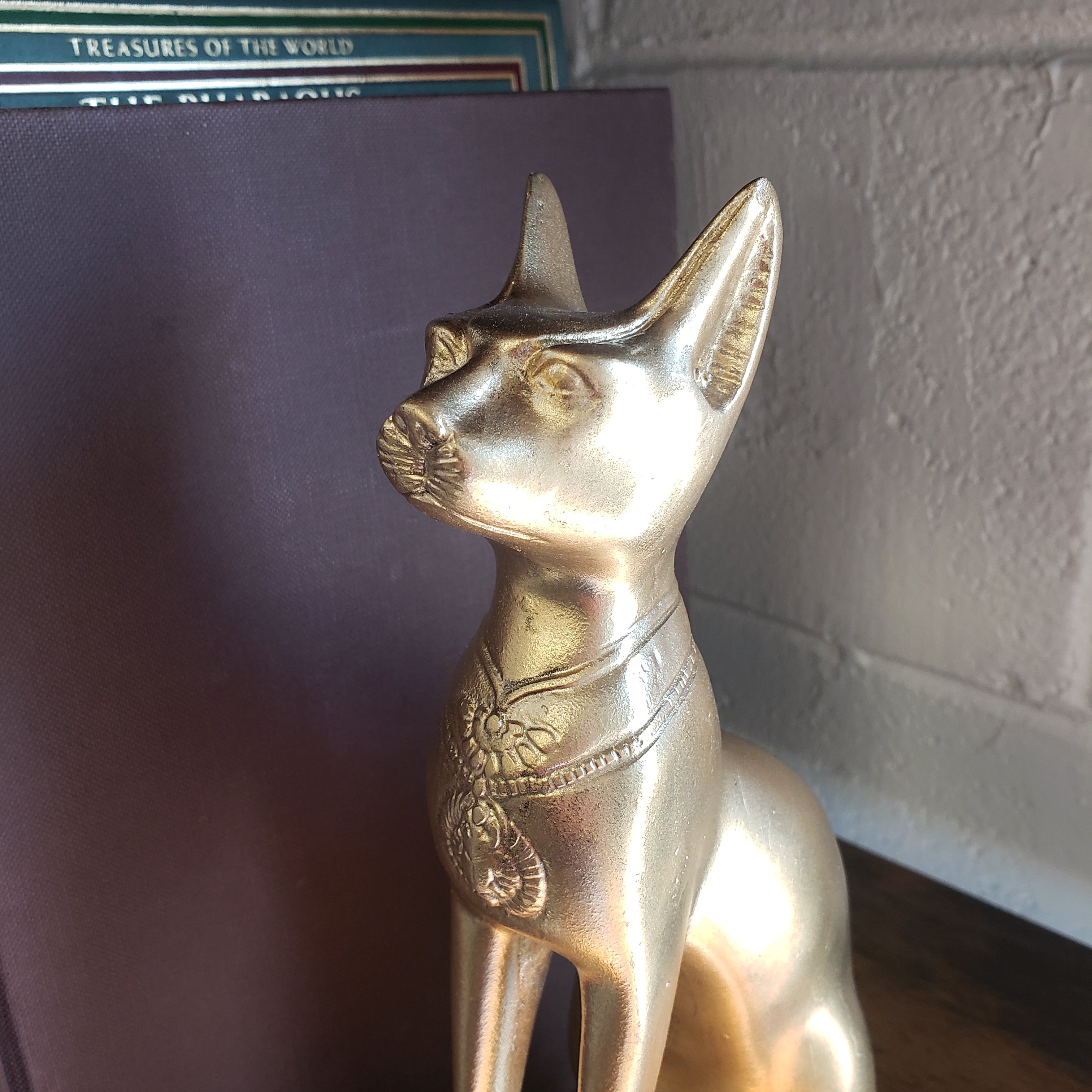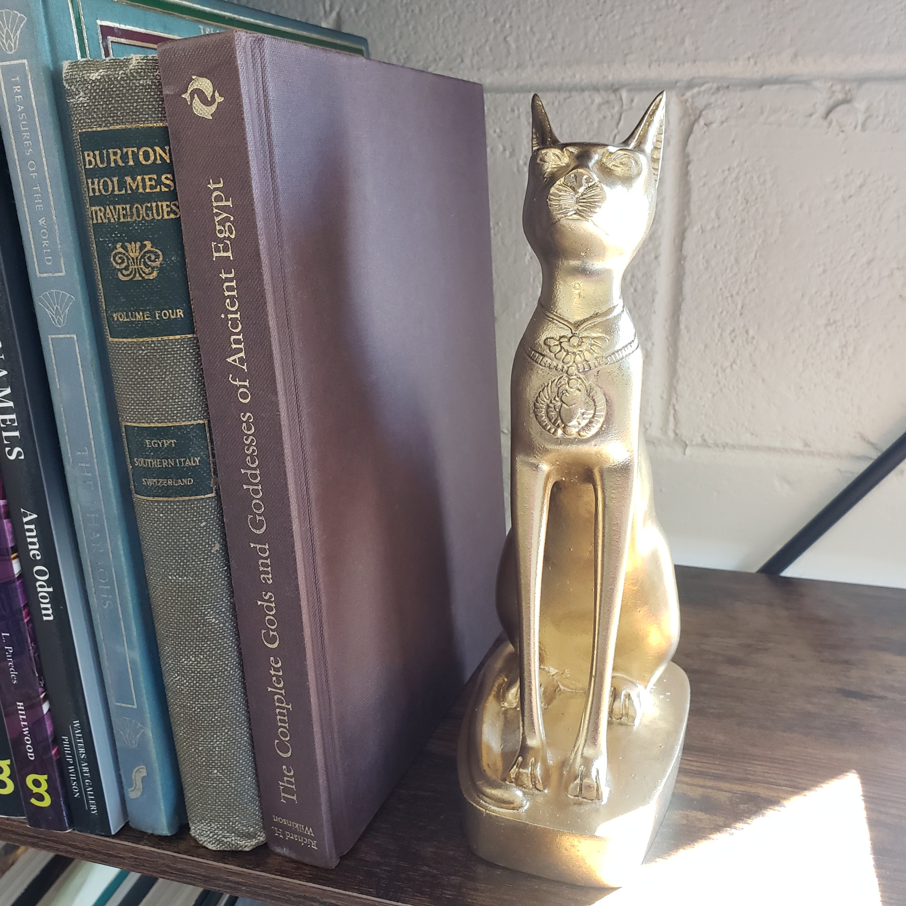 The goddess of plenty and joy, the cat Bastet represents the protective aspect of female power. Bastet is the daughter of Ra, the Sun God. She is aligned with the lioness and also represents the attributes of ferocious protection. Bastet is associated with the home and dancing. The Egyptians found cats fascinating, even regarding them as godlike. Because cats were deeply respected, they were often mummified and even buried in great tombs with their owners.