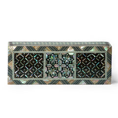 The primary material is mother of pearl, which is sourced from the inner layer of mollusk shells. The base is made of high-quality wood. The process involves precise cutting and fitting of tiny pieces of mother of pearl, which requires significant expertise and attention to detail. Mother-of-pearl inlay has been practiced in Egyptians for centuries, with techniques passed down through generations. The patterns and designs often carry cultural and religious significance, reflecting the rich artistic traditions of the region.