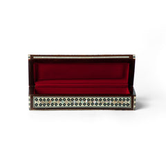 Mother-of-pearl inlaid boxes from Egypt are exquisite examples of traditional craftsmanship, blending intricate designs with rich cultural heritage. These boxes feature a wooden base adorned with meticulously cut and polished mother-of-pearl pieces, creating beautiful geometric patterns, floral motifs, and arabesques.