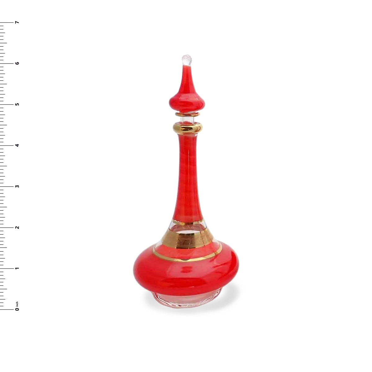 Our beautiful genie bottles are hand blown glass from Egypt. These bottles are beautiful in shape and color. The stoppers are matched to the size of the bottle. No two are the same as each has different etchings in the 24K gold plated accent ribbon around the middle. The colors may be lighter or darker between bottles.