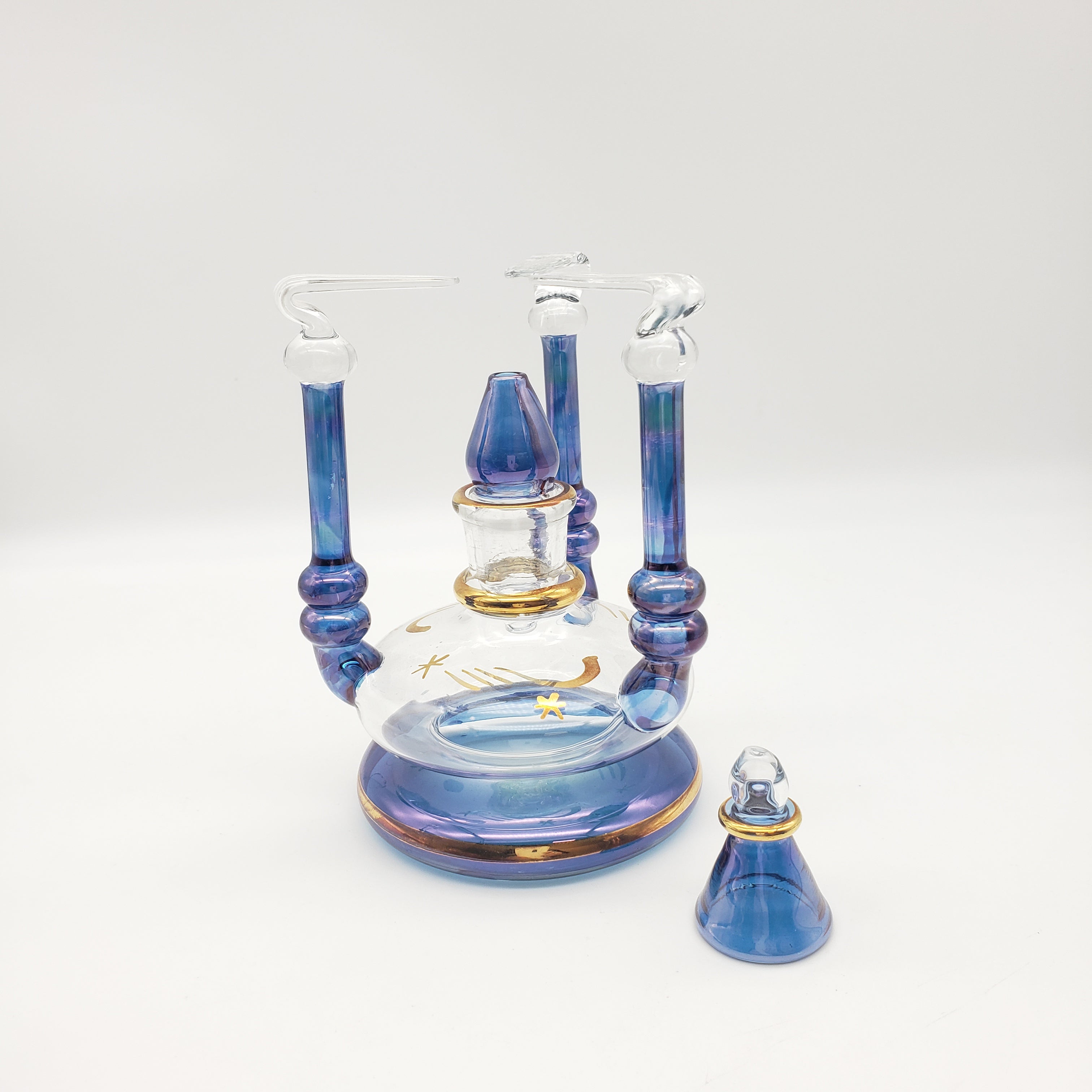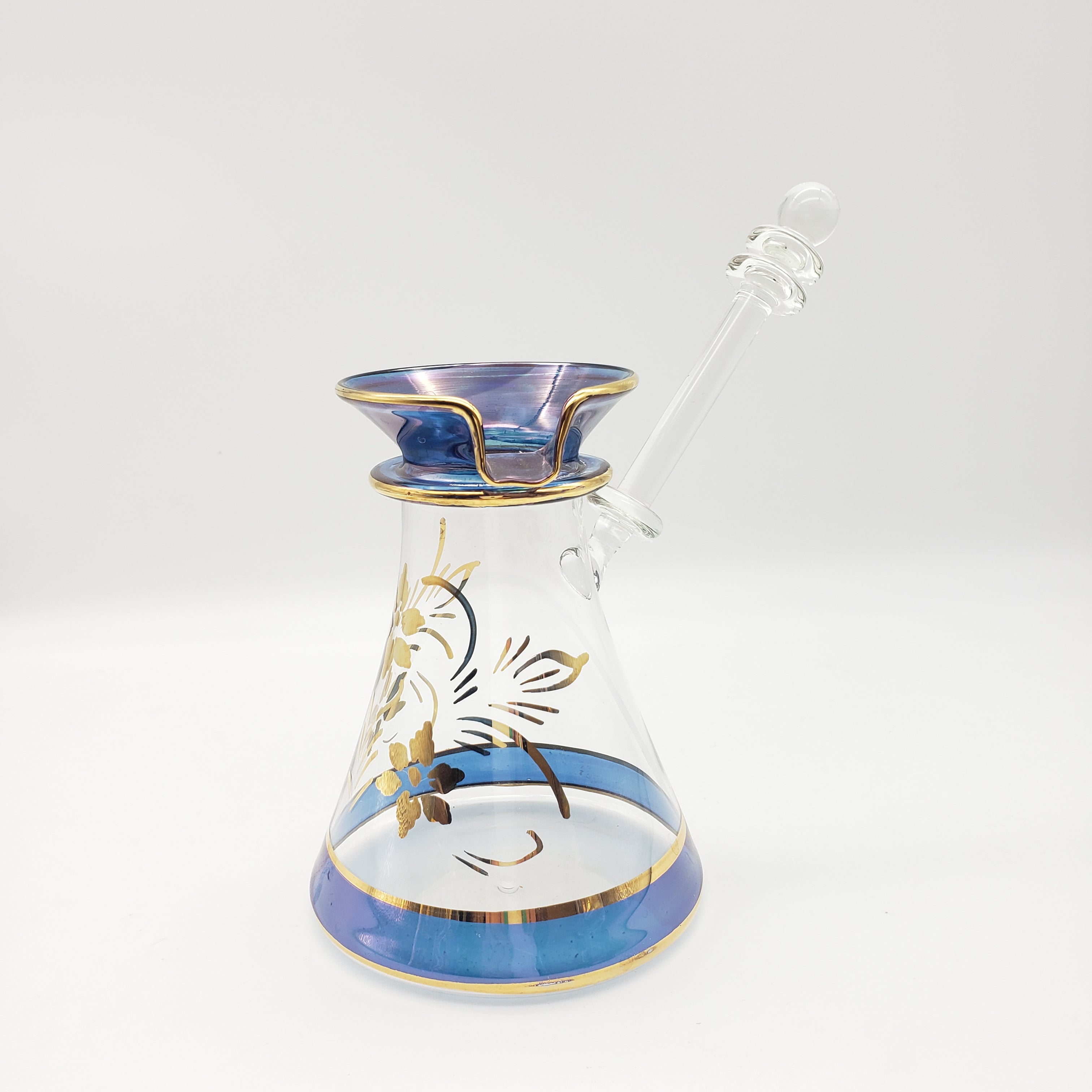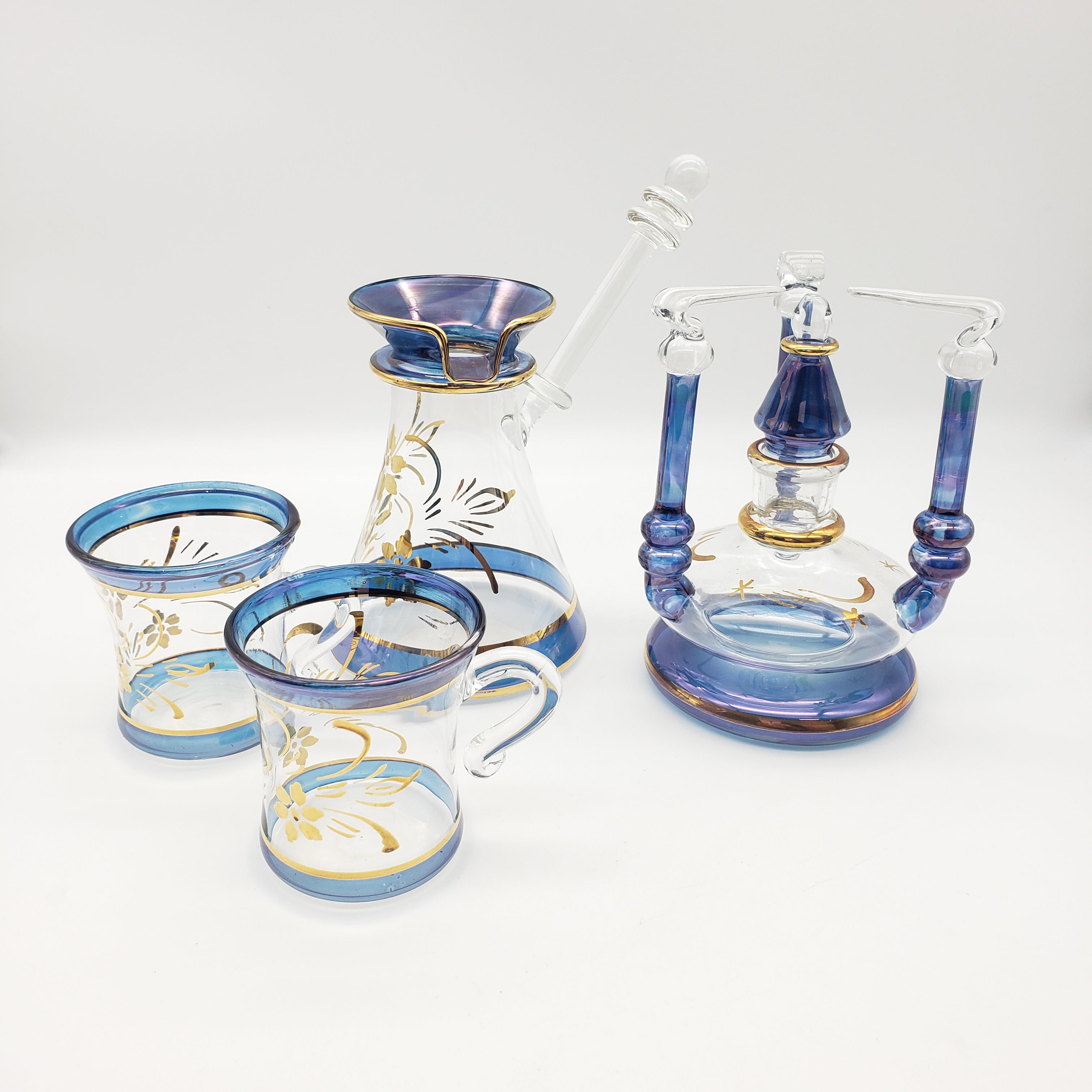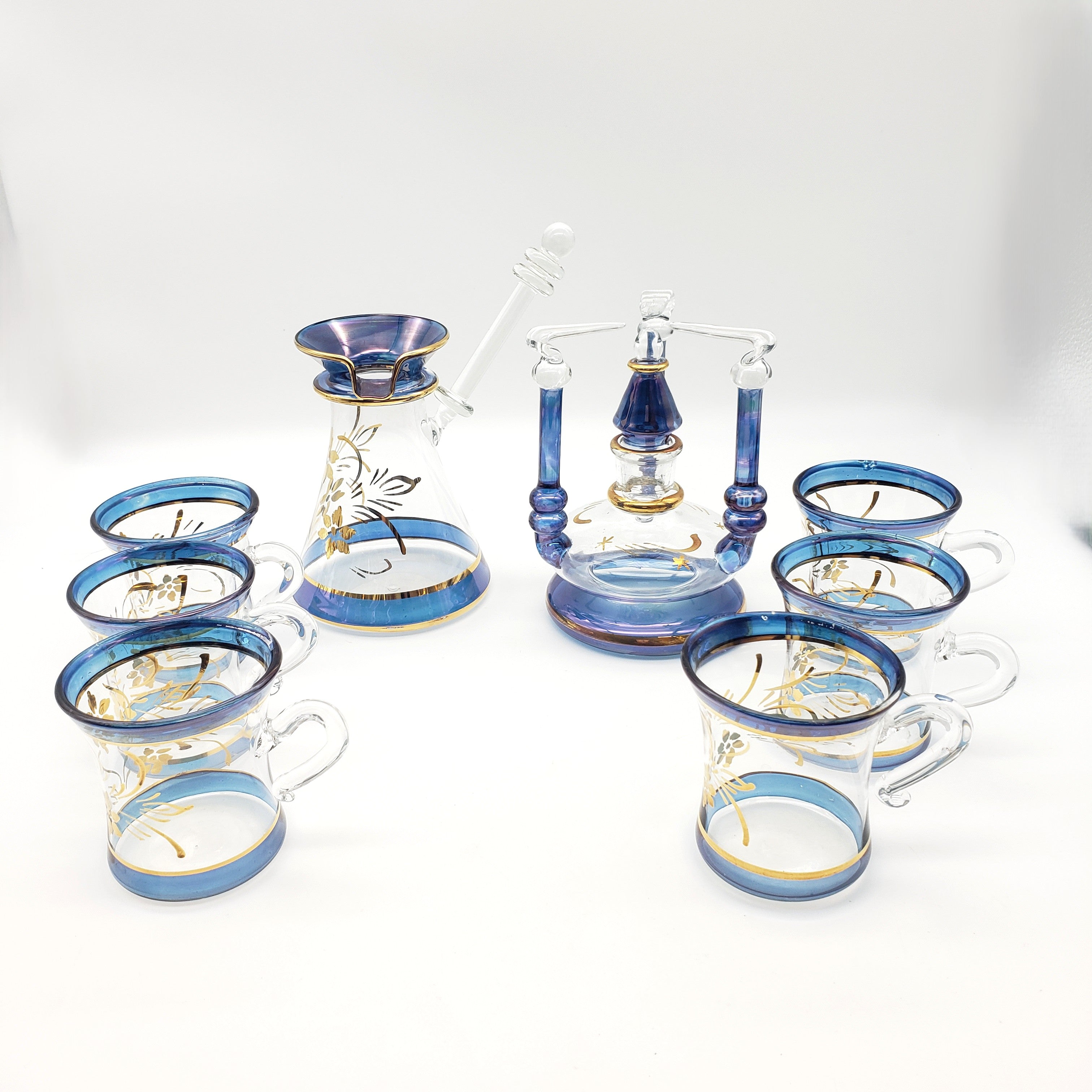 This beautiful and delicate tea set was made in Egypt. There are hand-painted details and 24k gold leaf. It is perfect for tea or for making Turkish coffee.
