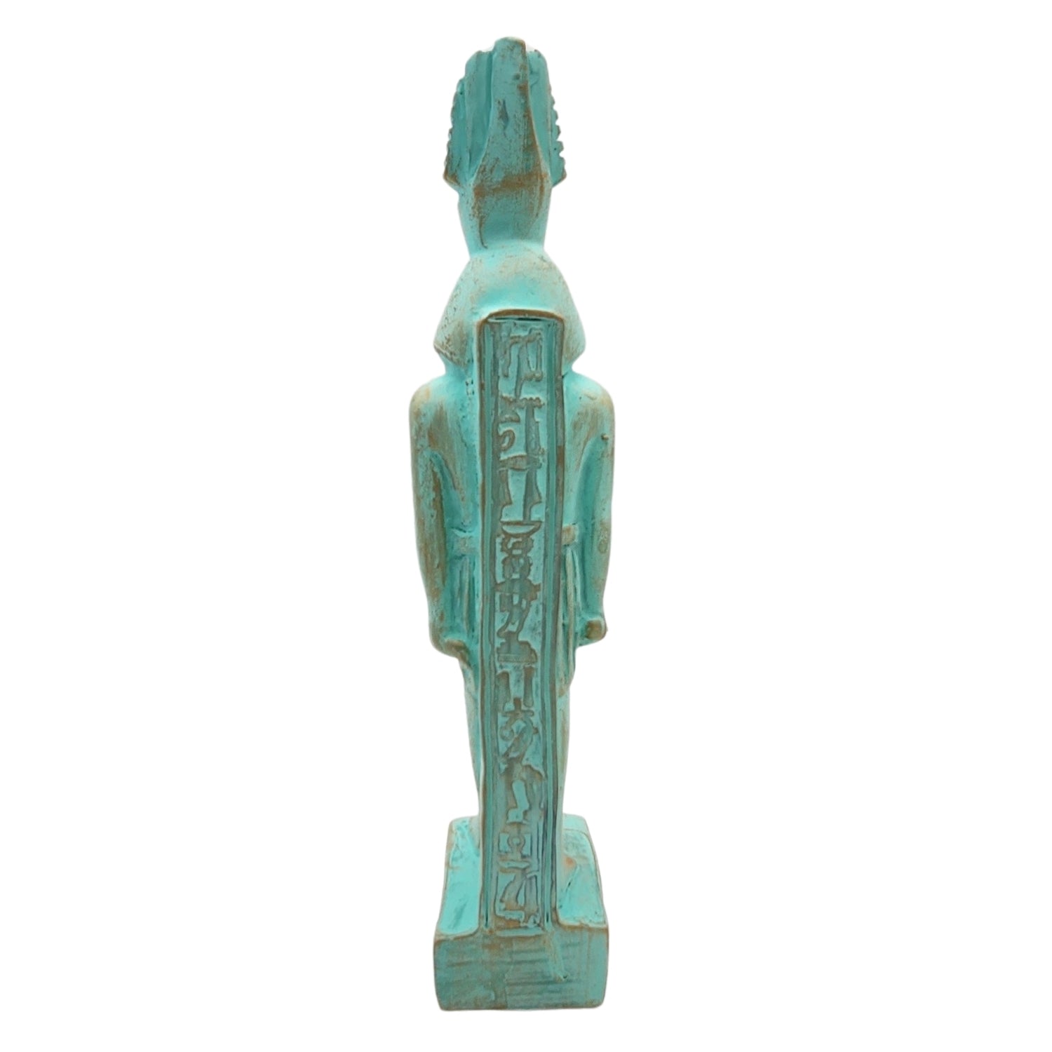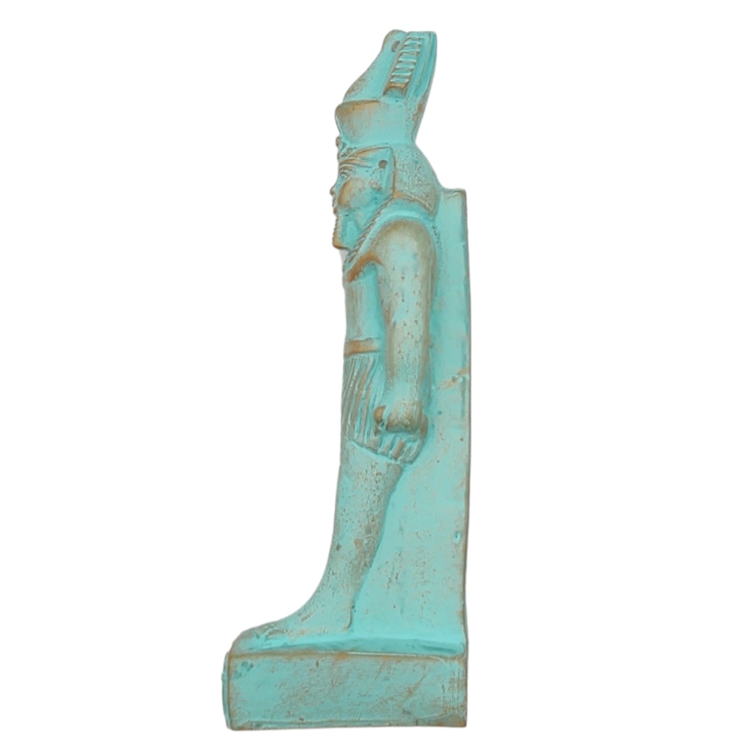 This polymer resin statue has beautiful hand carved details. It is 9.5 inches tall. The statue was handmade in Luxor, Egypt. Due to the hand painted quality, there are some inconsistencies in the painted finish.