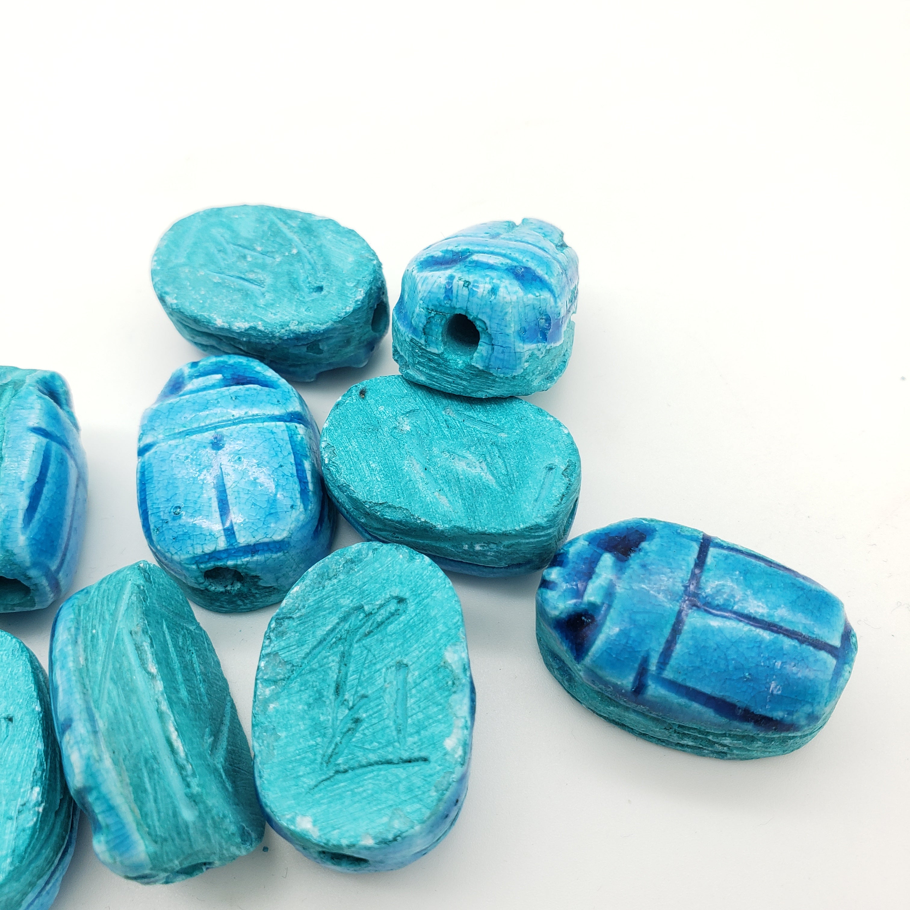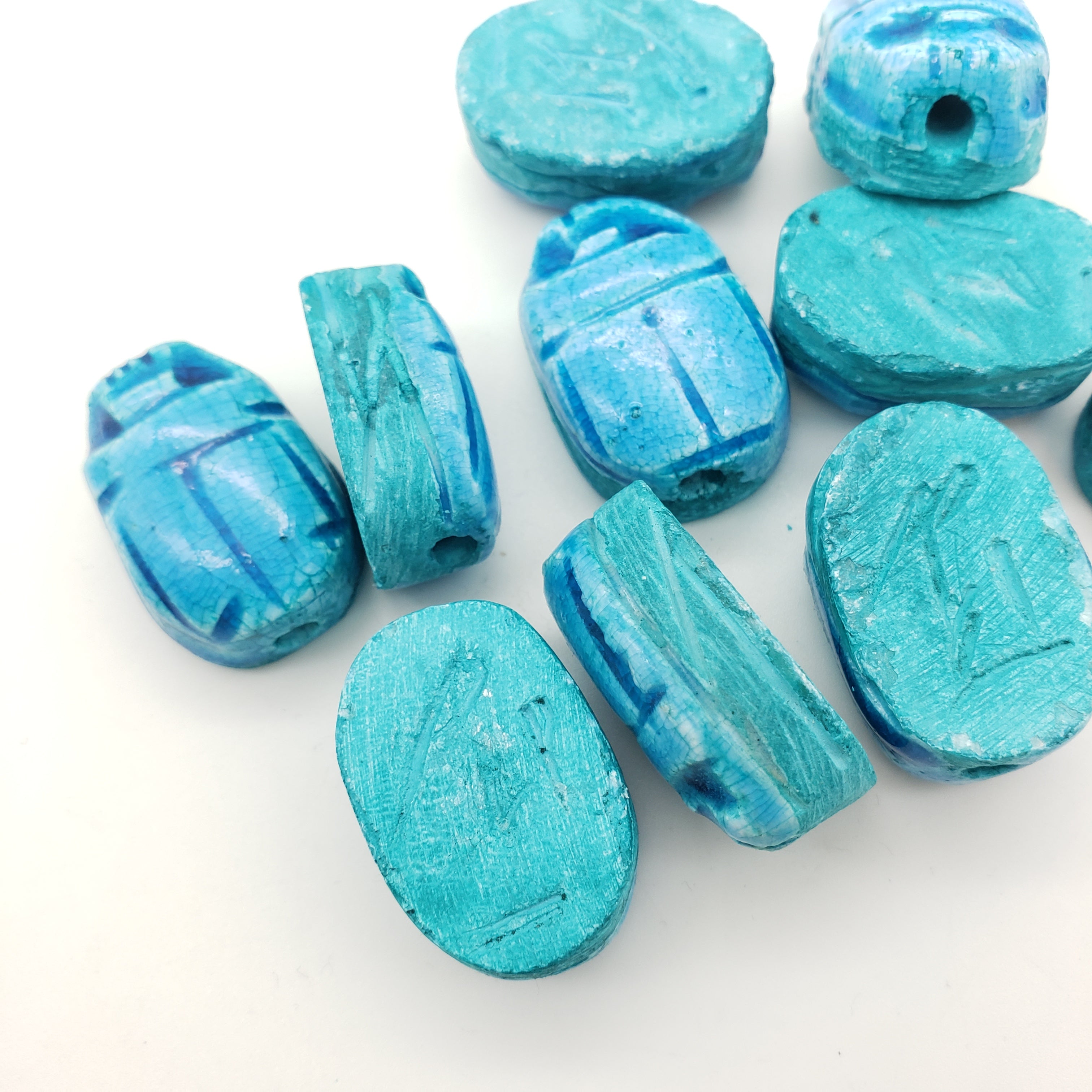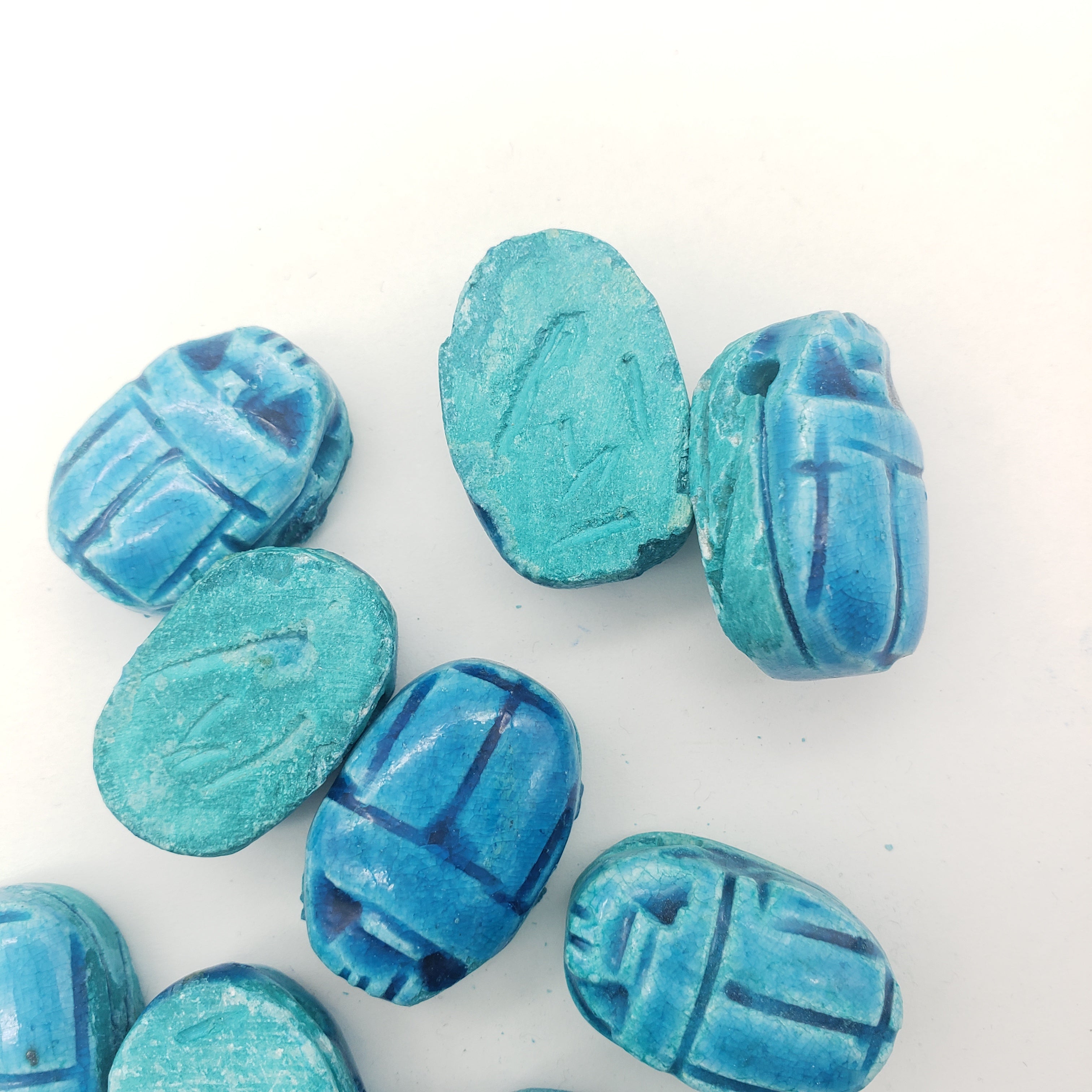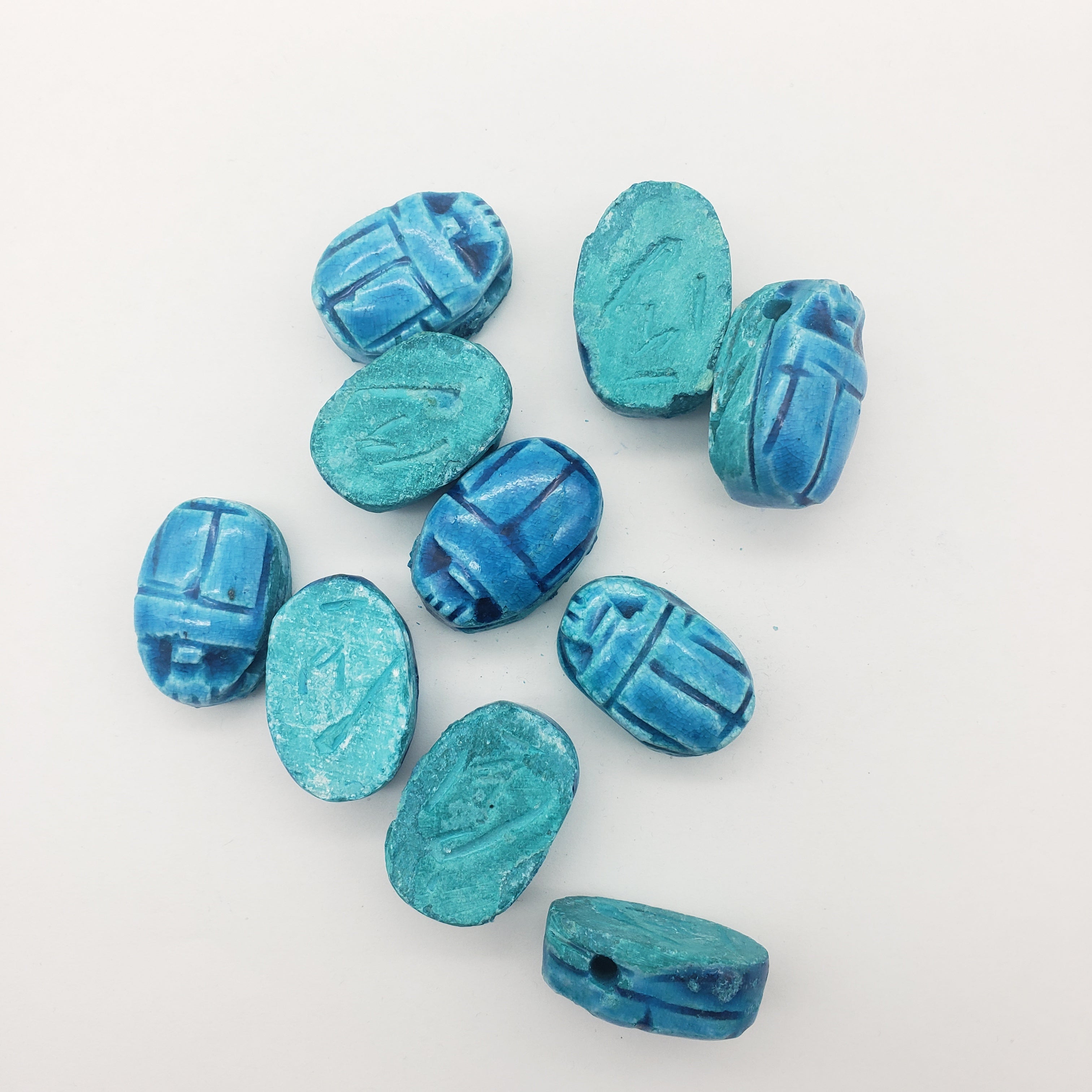 Sustainably crafted in Luxor, Egypt by skilled multi-generational artisans. Crafted to capture the authenticity of the faience beads found in Ancient Egypt, packaged in a decorative box, and with an information card about scarabs, making it the perfect gift.