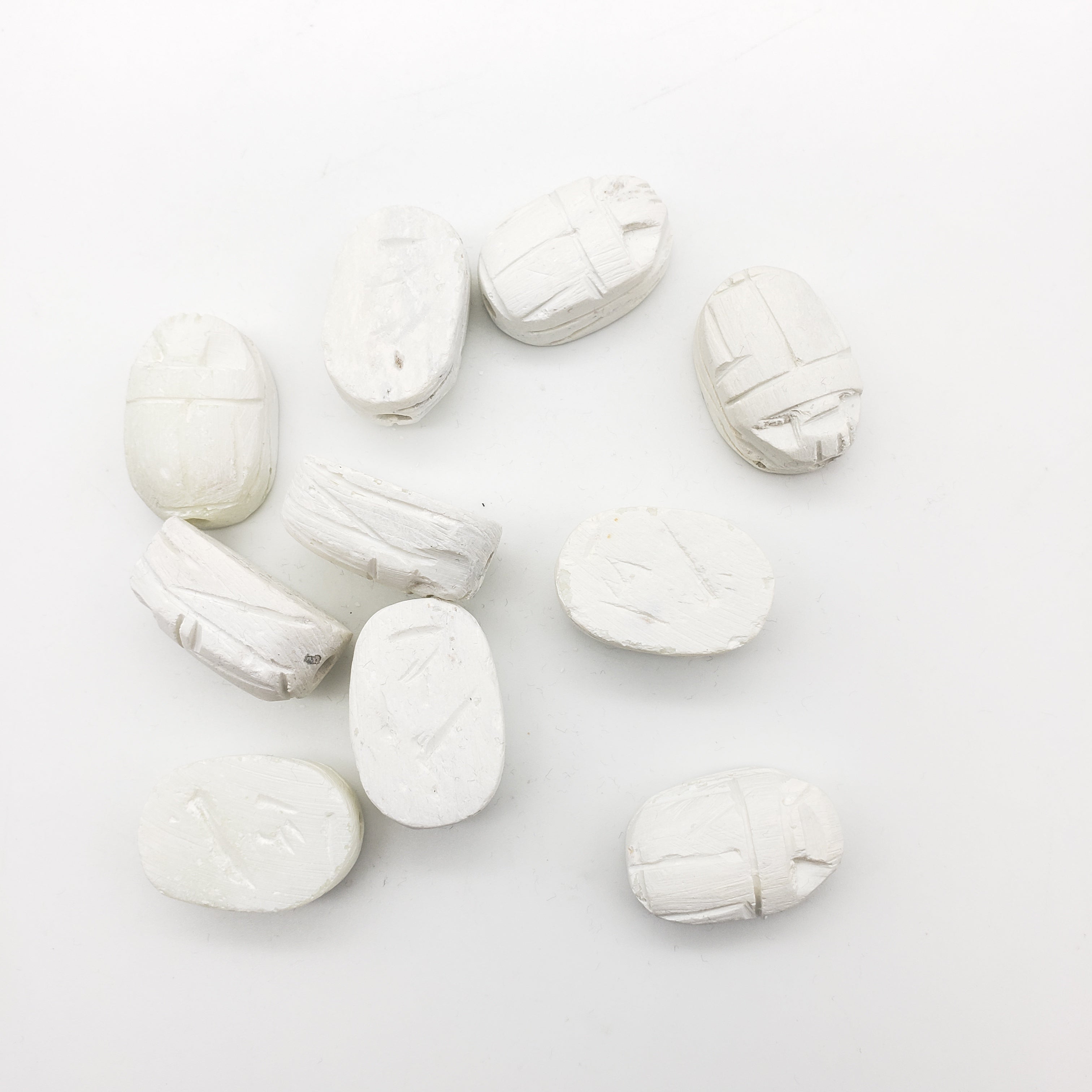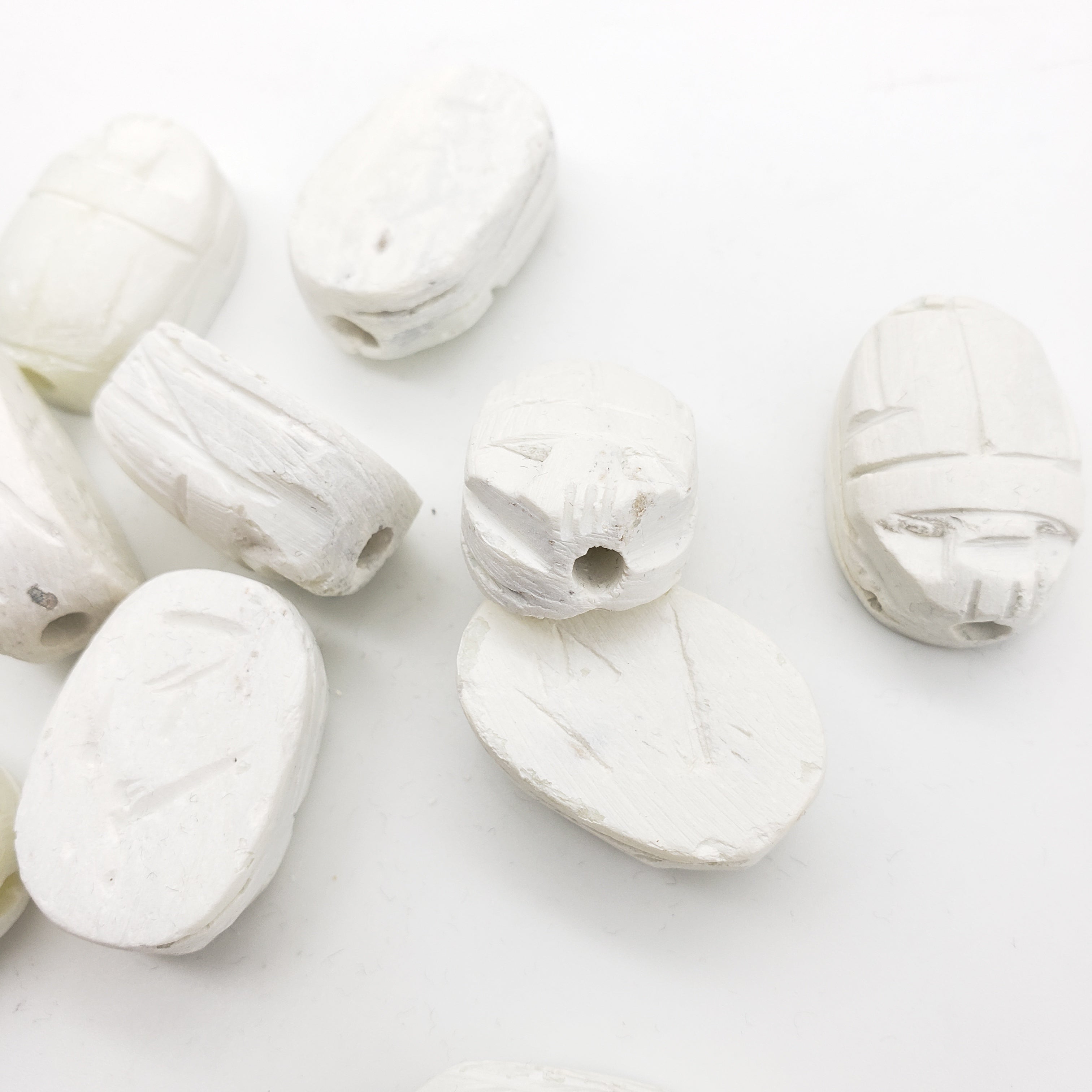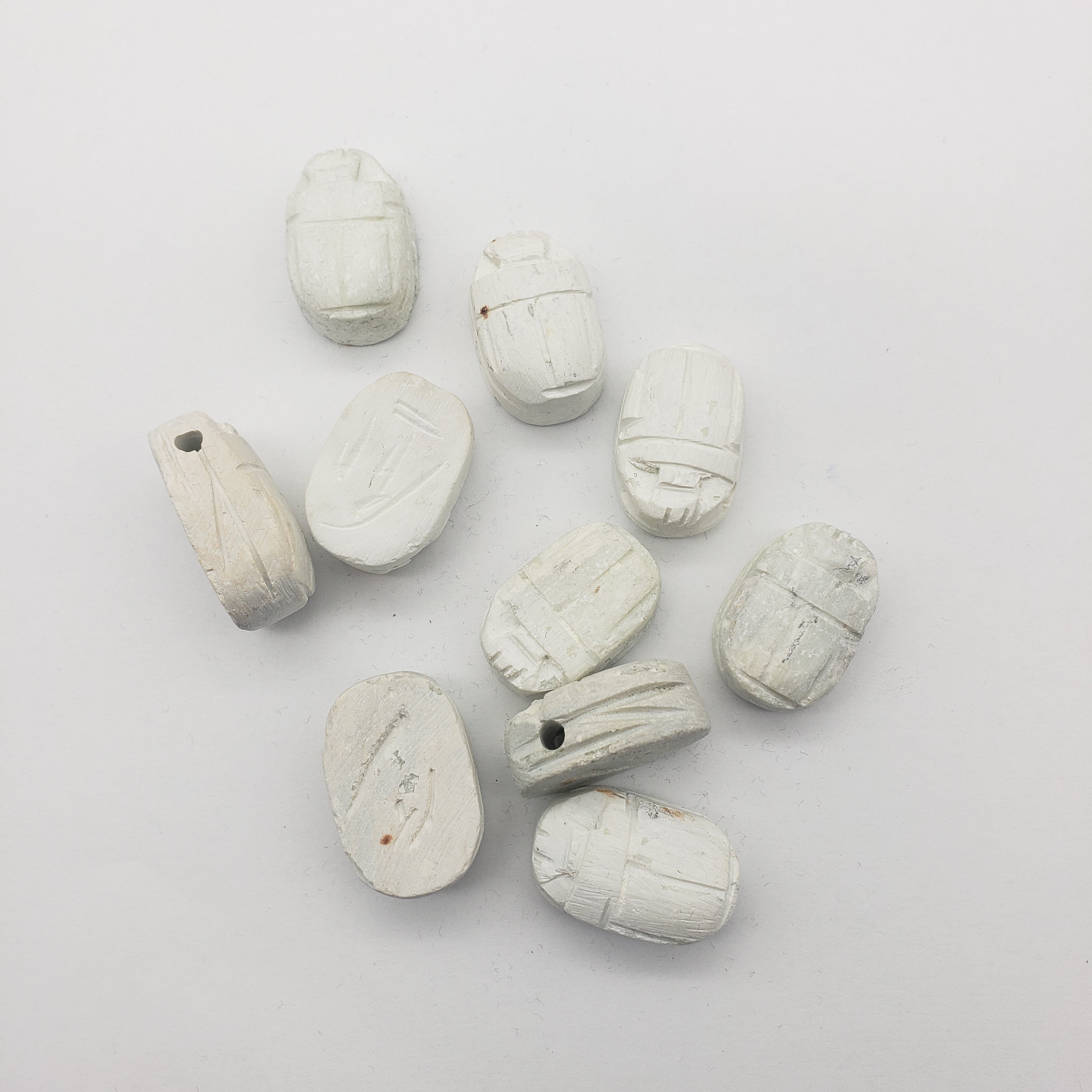 Size varies between beads, but they are about 2cm by 2.8cm, and are made of soapstone. These beads come in a set of 10. Choose from a vertical or horizontal drill type. Due to the handmade quality, there will be some variance in size, color, design, and quality.
