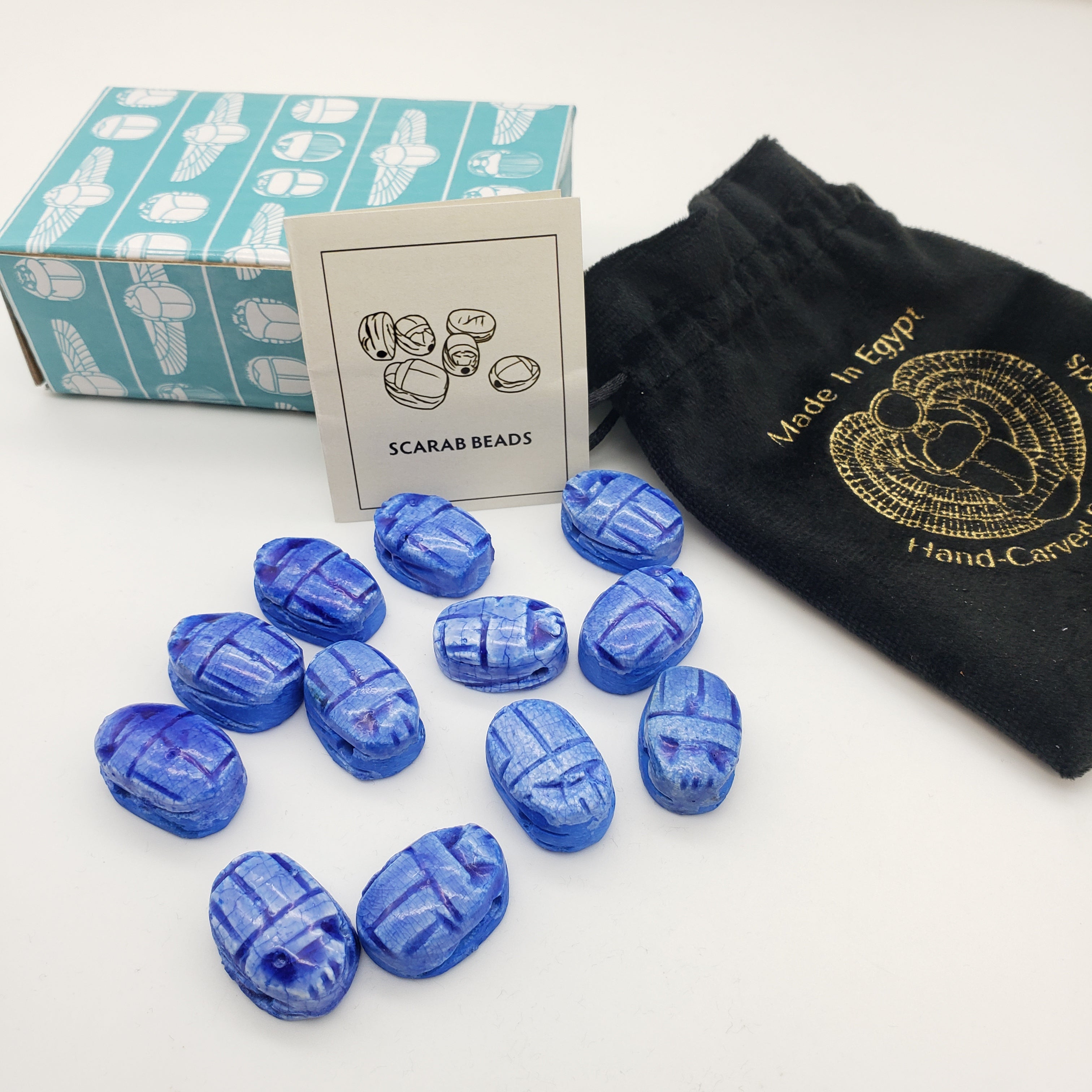 Sustainably crafted in Luxor, Egypt by skilled multi-generational artisans. Crafted to capture the authenticity of the faience beads found in Ancient Egypt, packaged in a hieroglyphic box, and with an information card about scarabs, making it the perfect gift.