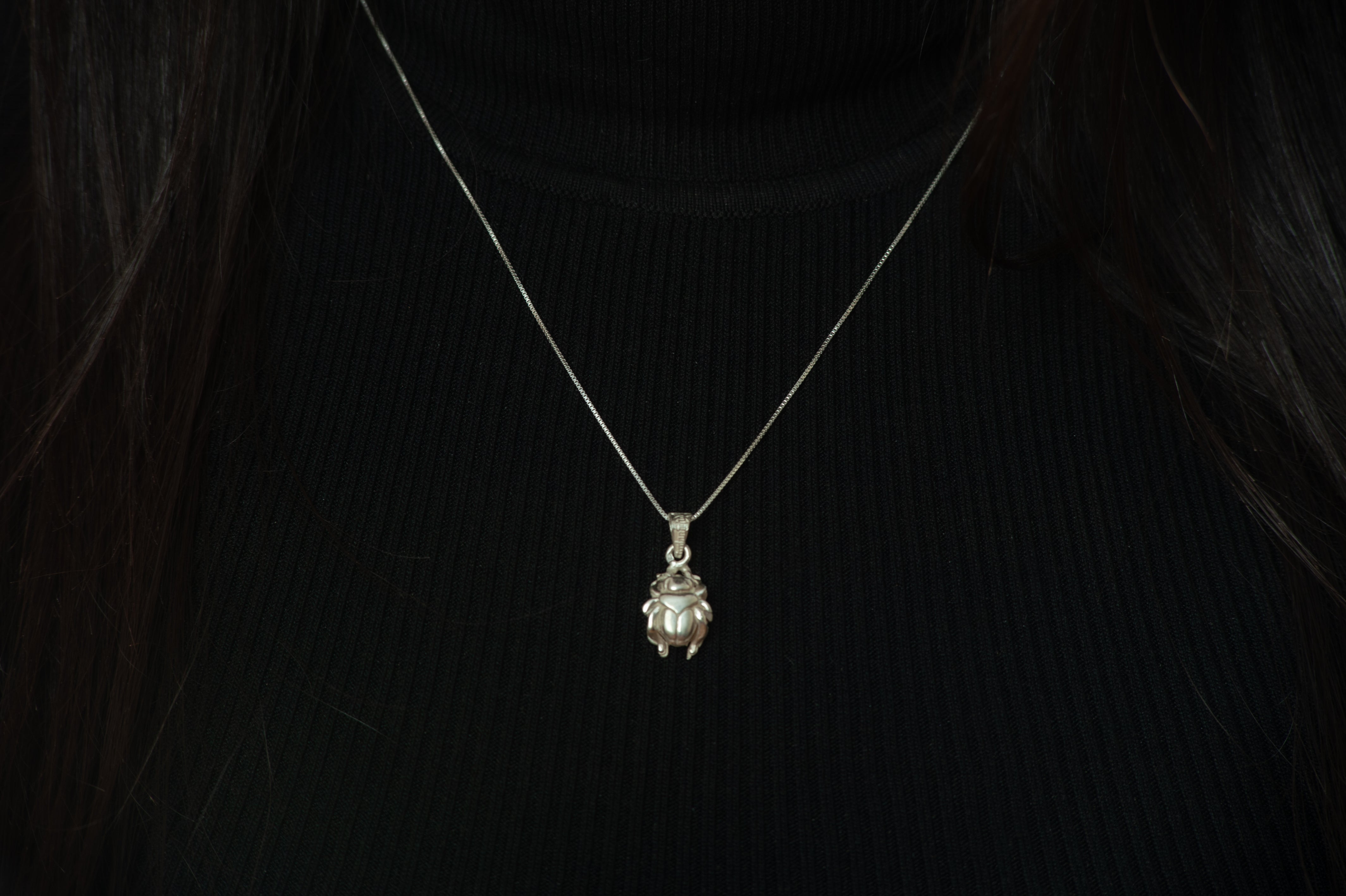 This beautiful, handmade scarab pendant is tiny and perfect for layering or as a charm for a charm bracelet. Made especially for us in Cairo, Egypt! This pendant is made from sterling silver. The silver is stamped by the Egyptian government certifying the silver content.