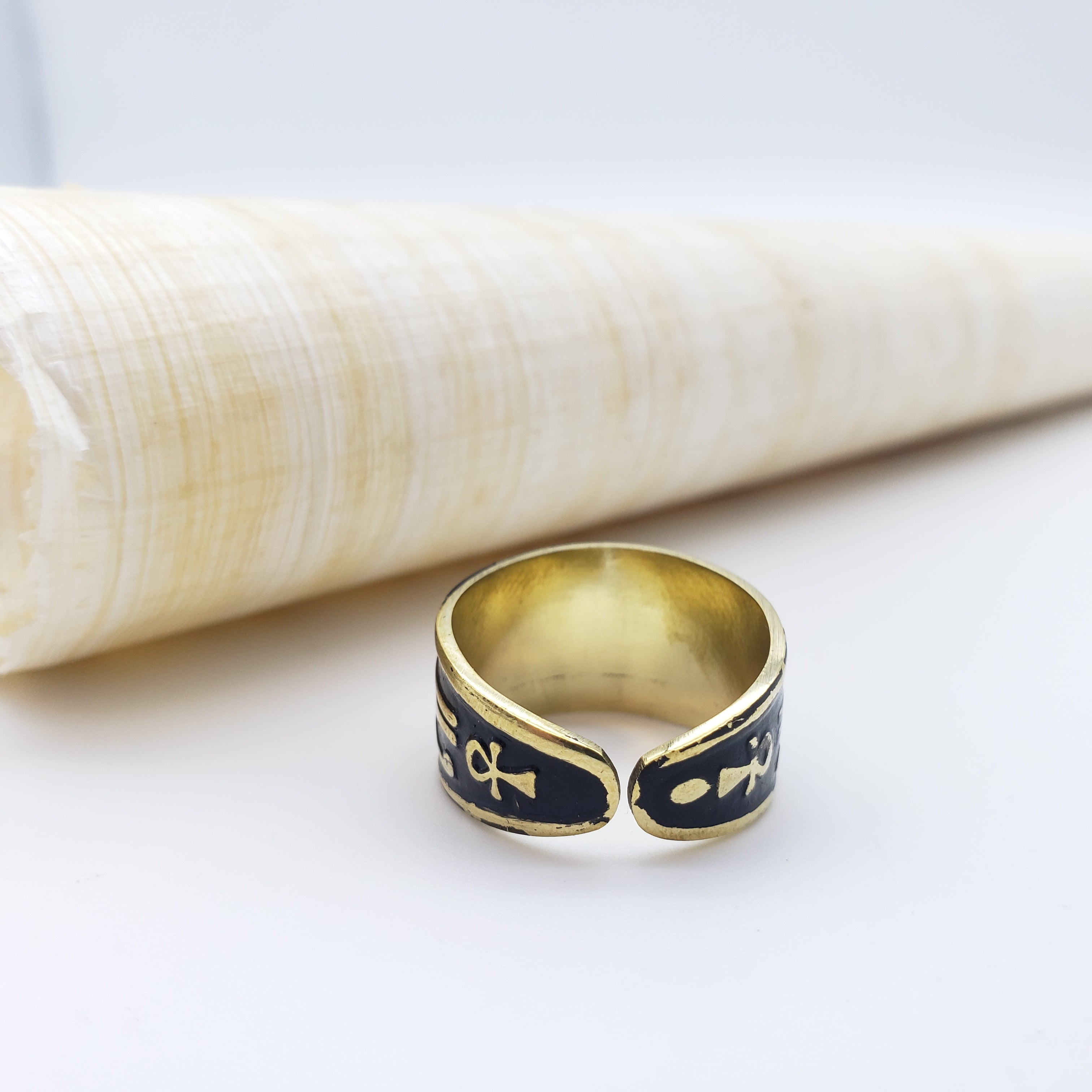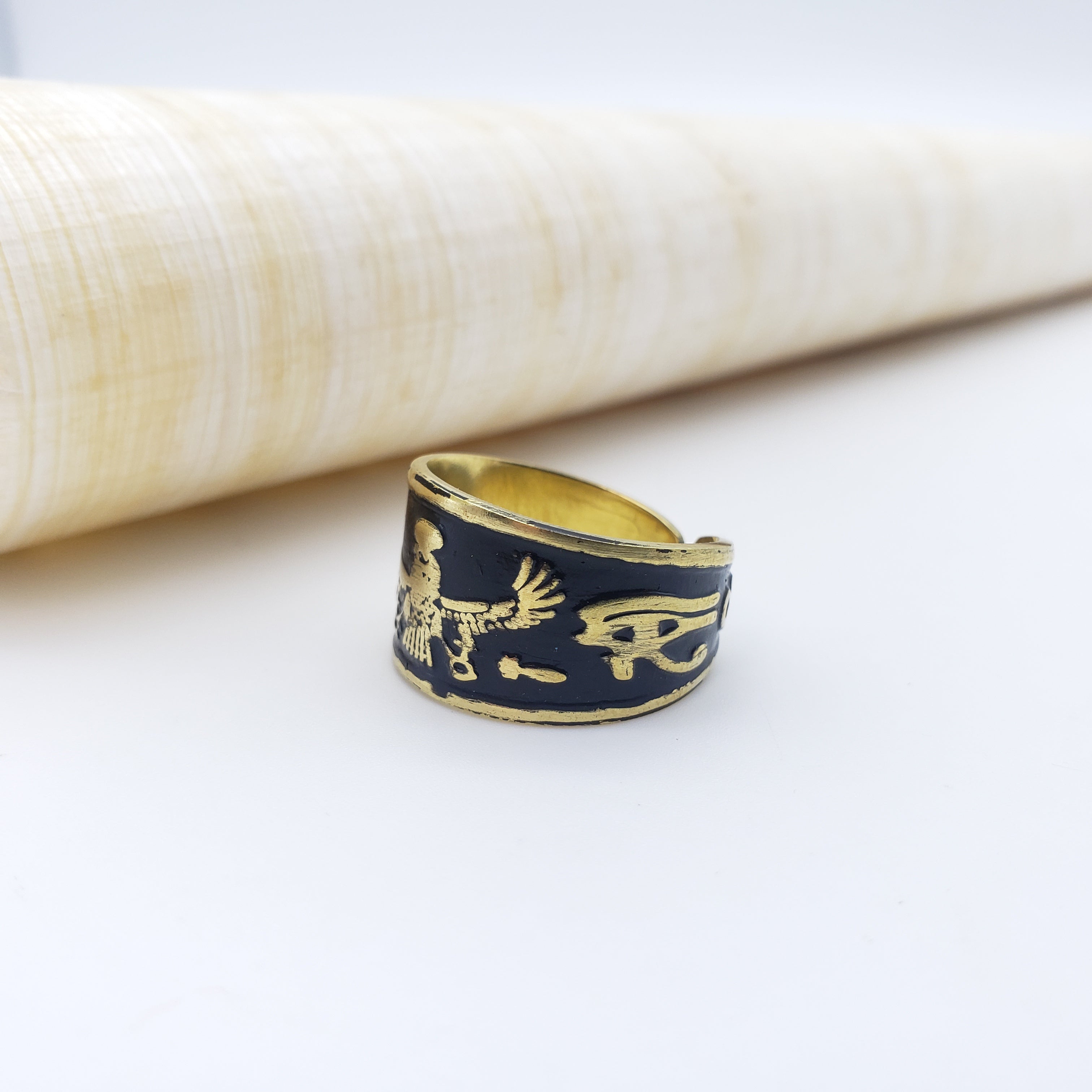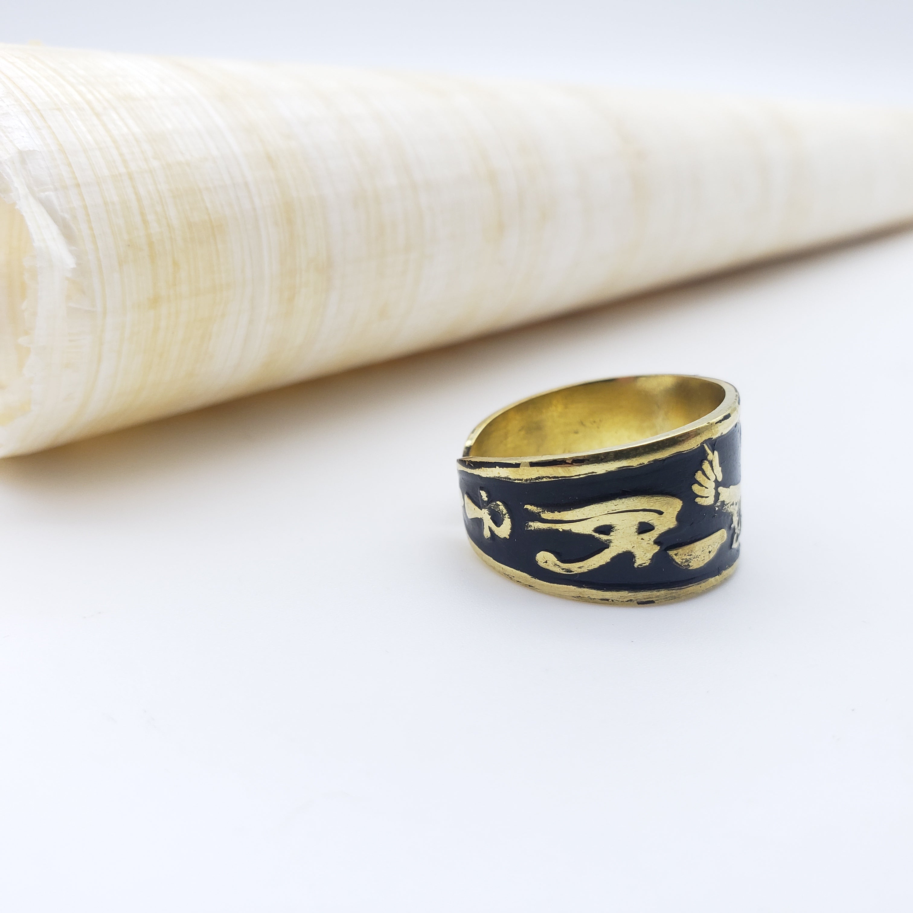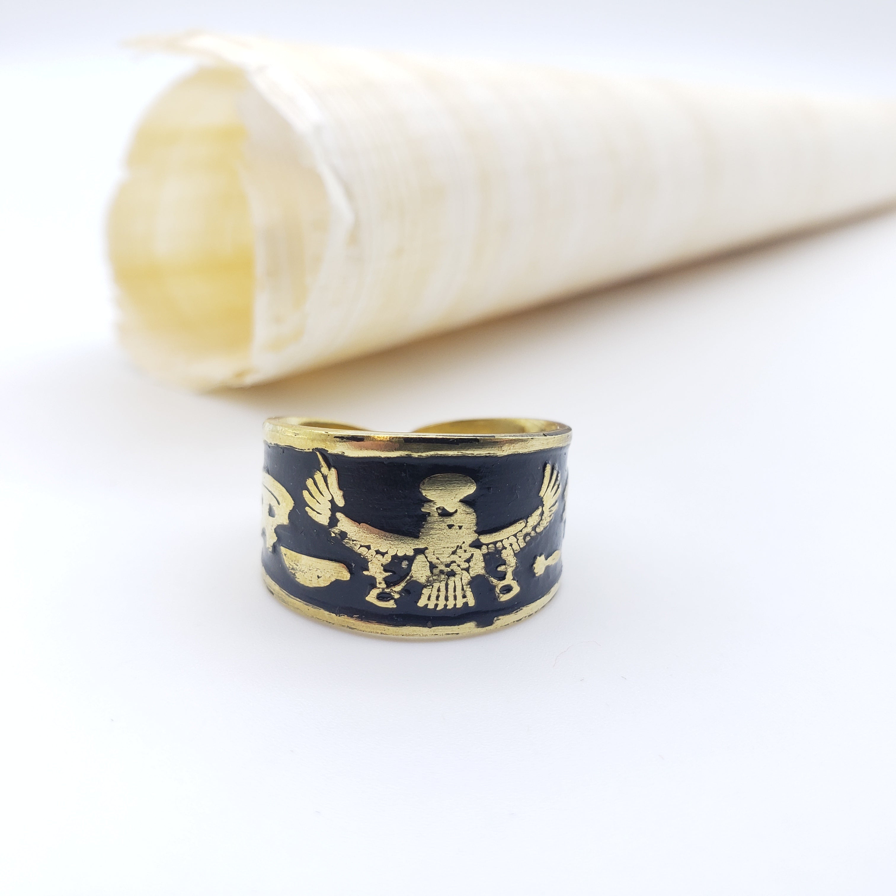 This oxidized brass ring features an Egyptian vulture. Made in Cairo, Egypt! This ring is made from brass and is adjustable.