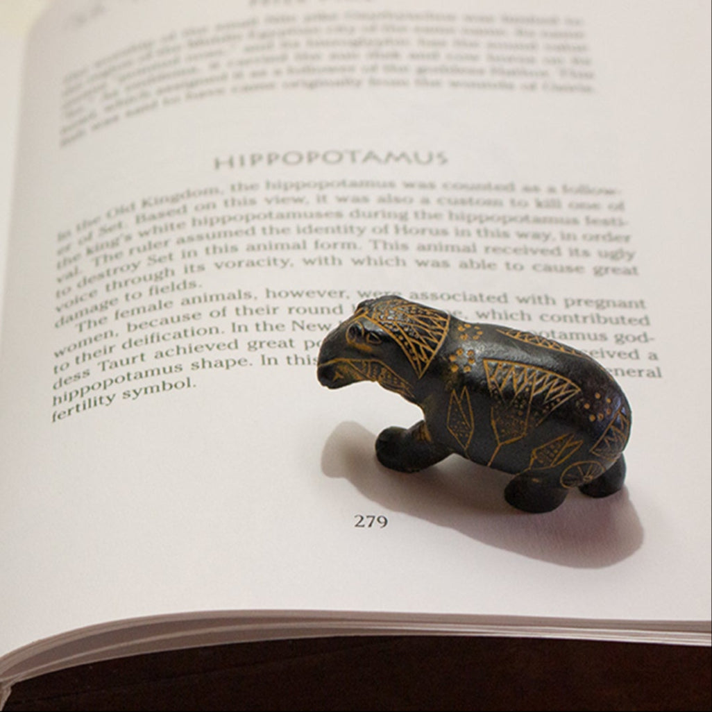 This tiny handmade hippo statue is made of polymer resin. There is yellow pigment added to bring out the lotus flower details. Made in Luxor, Egypt!