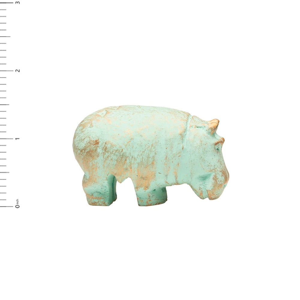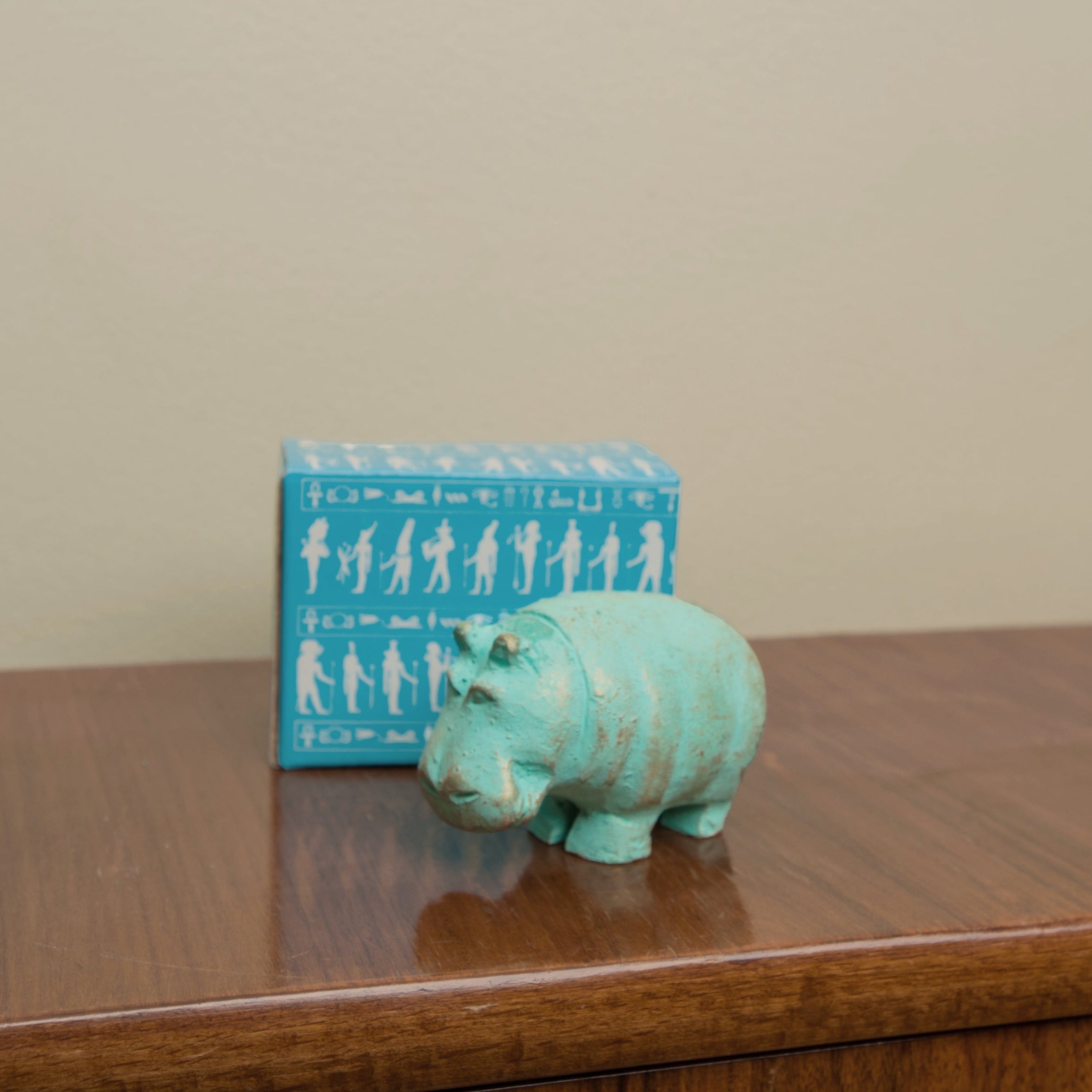 In Ancient Egypt, the faience hippos were linked to the themes of life, regeneration, and rebirth through many different layers that included the behavior of the animals themselves as well as the decoration of these statuettes. When placed in tombs, they were meant to supply the deceased with regenerative power and to guarantee his or her rebirth. Taweret is the protective ancient Egyptian goddess of childbirth and fertility. The name "Taweret" means "she who is great" or simply "great one".