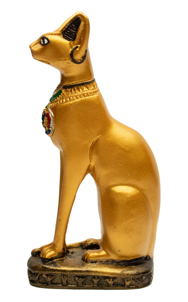 The goddess of plenty and joy, the cat Bastet represents the protective aspect of female power. Bastet is the daughter of Ra, the Sun God. She is aligned with the lioness and also represents the attributes of ferocious protection. Bastet is associated with the home and dancing. The Egyptians found cats fascinating, even regarding them as godlike. Because cats were deeply respected, they were often mummified and even buried in great tombs with their owners.