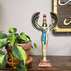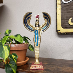 This Egyptian goddess statue represents a tall winged Isis. Made in Egypt! It is made of polymer and was hand painted. The details are very well done for the statues age.